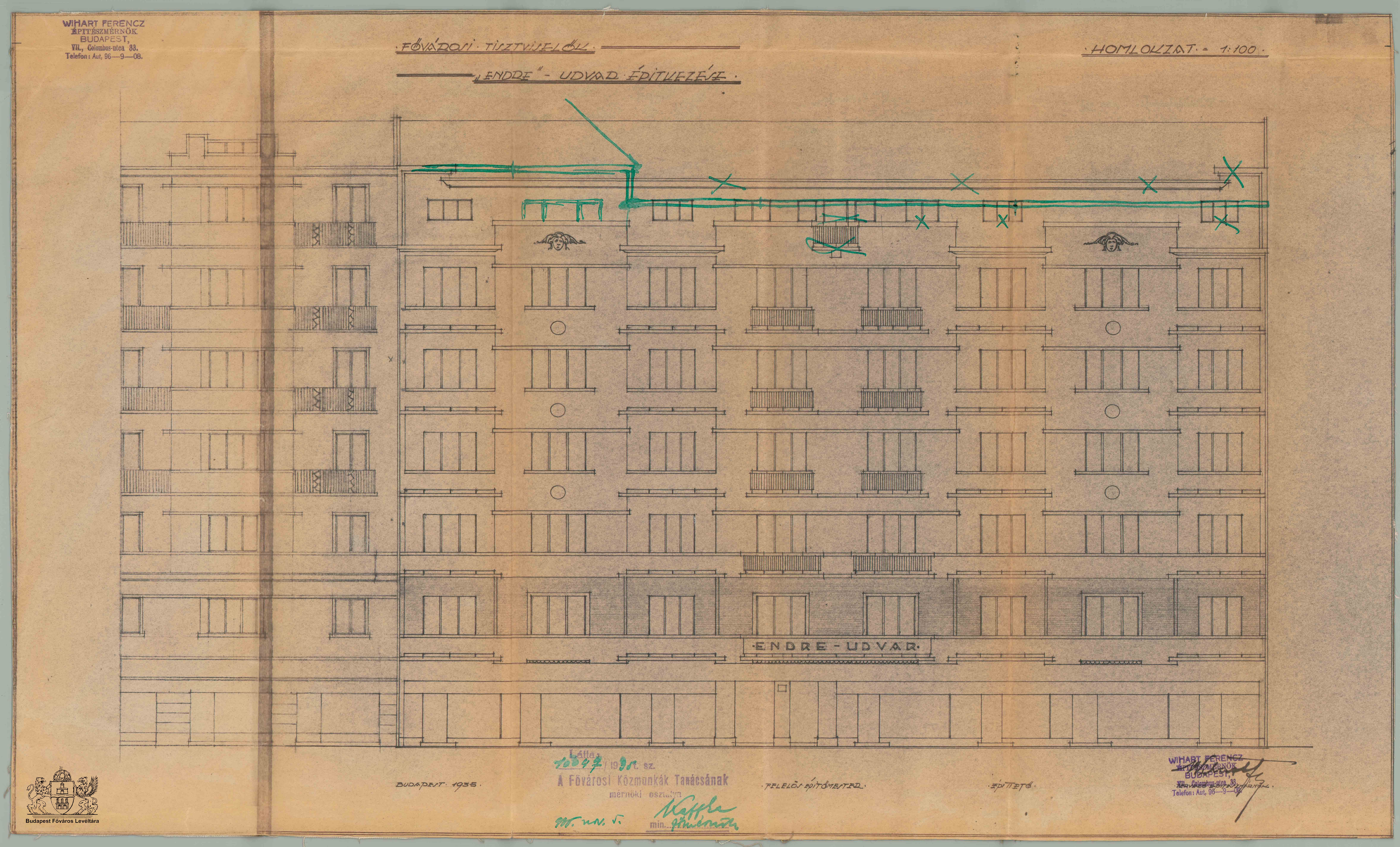 Edömér utca 4. (Endre-udvar) PreviousNext Toggle image Homlokzat Dokumentum típusa Tervek Keletkezés ideje 1935 Őrzési hely Budapest Főváros Levéltára Vonatkozó alkotás Edömér utca 4. (Endre-udvar) Jelzet XV.17.d.329 Letöltés PreviousNext