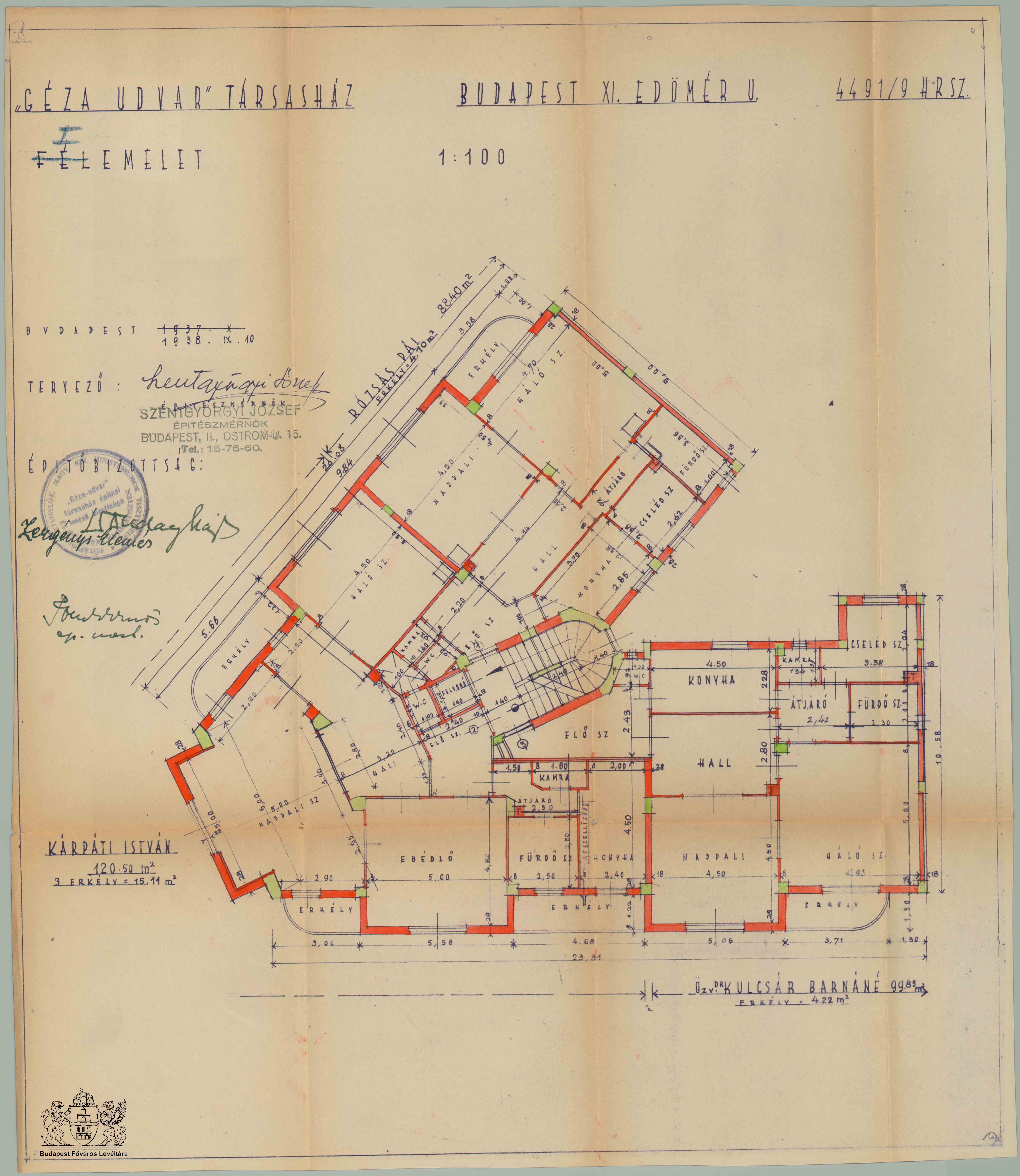 Edömér utca 6./Tas vezér utca 16. (Géza-udvar) PreviousNext Toggle image I. emeleti alaprajz (módosított) Type of document Tervek Date of creation 1938.09.10 Collection Budapest Főváros Levéltára Related work Edömér utca 6./Tas vezér utca 16. (Géza-udvar) Reference code XV.17.d.329 Letöltés PreviousNext
