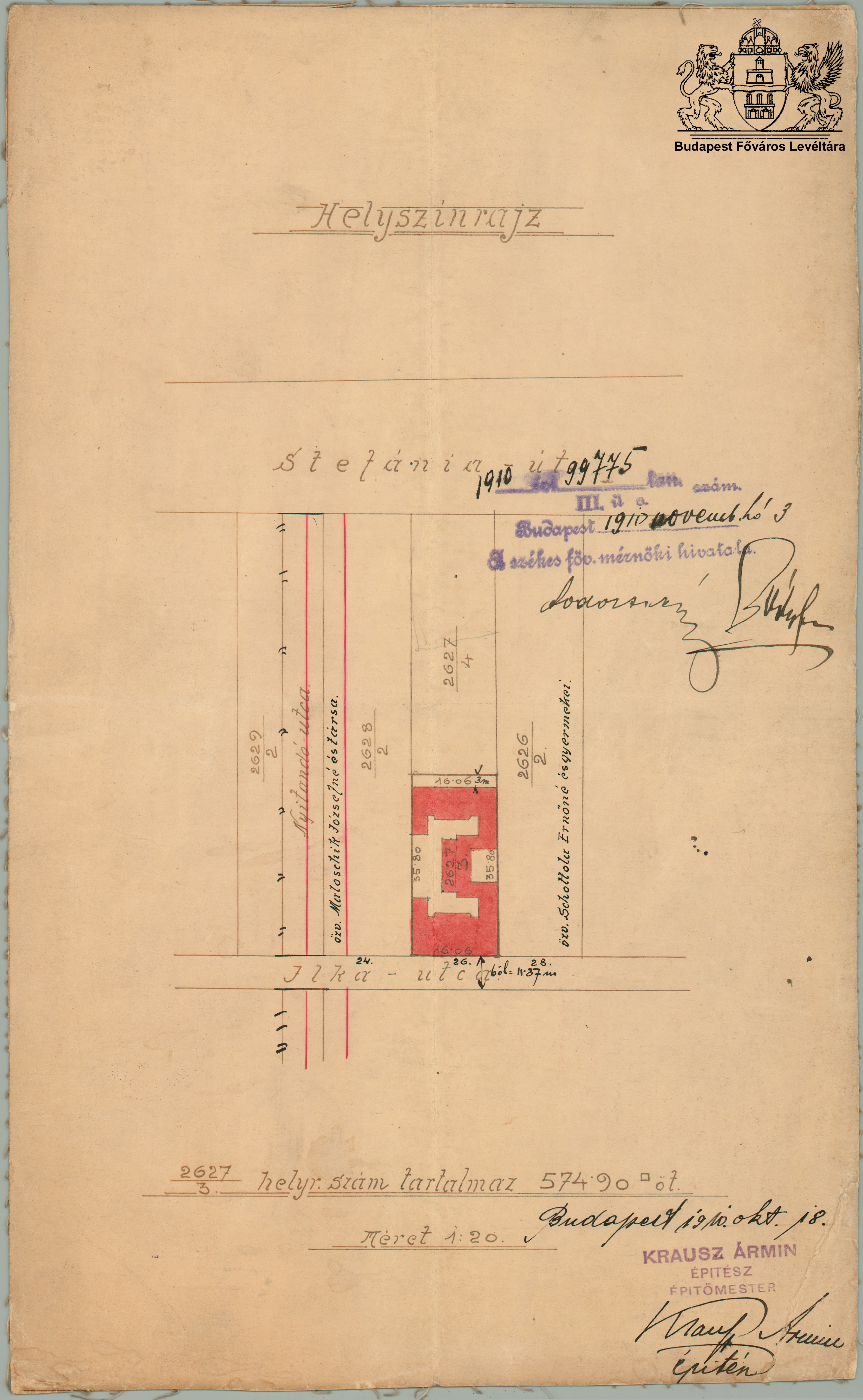 Ilka utca 26. PreviousNext Toggle image Helyszínrajz Type of document Tervek Date of creation 1910.10.18 Collection Budapest Főváros Levéltára Related work Ilka utca 26. Reference code XV.17.d.329 Letöltés PreviousNext
