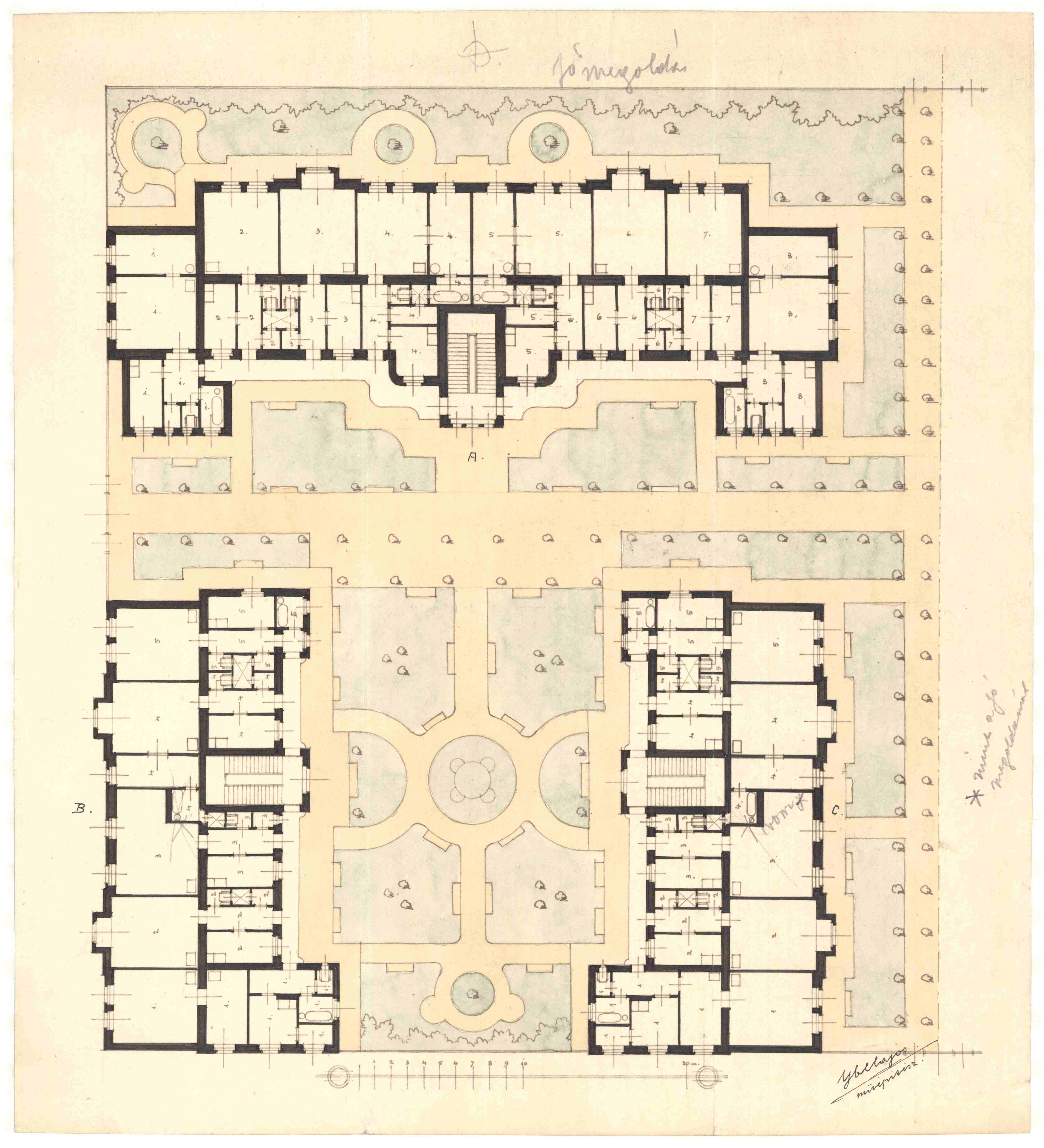 Budapest Székesfőváros Hungária körúti bérházépítkezése, helyszínrajz