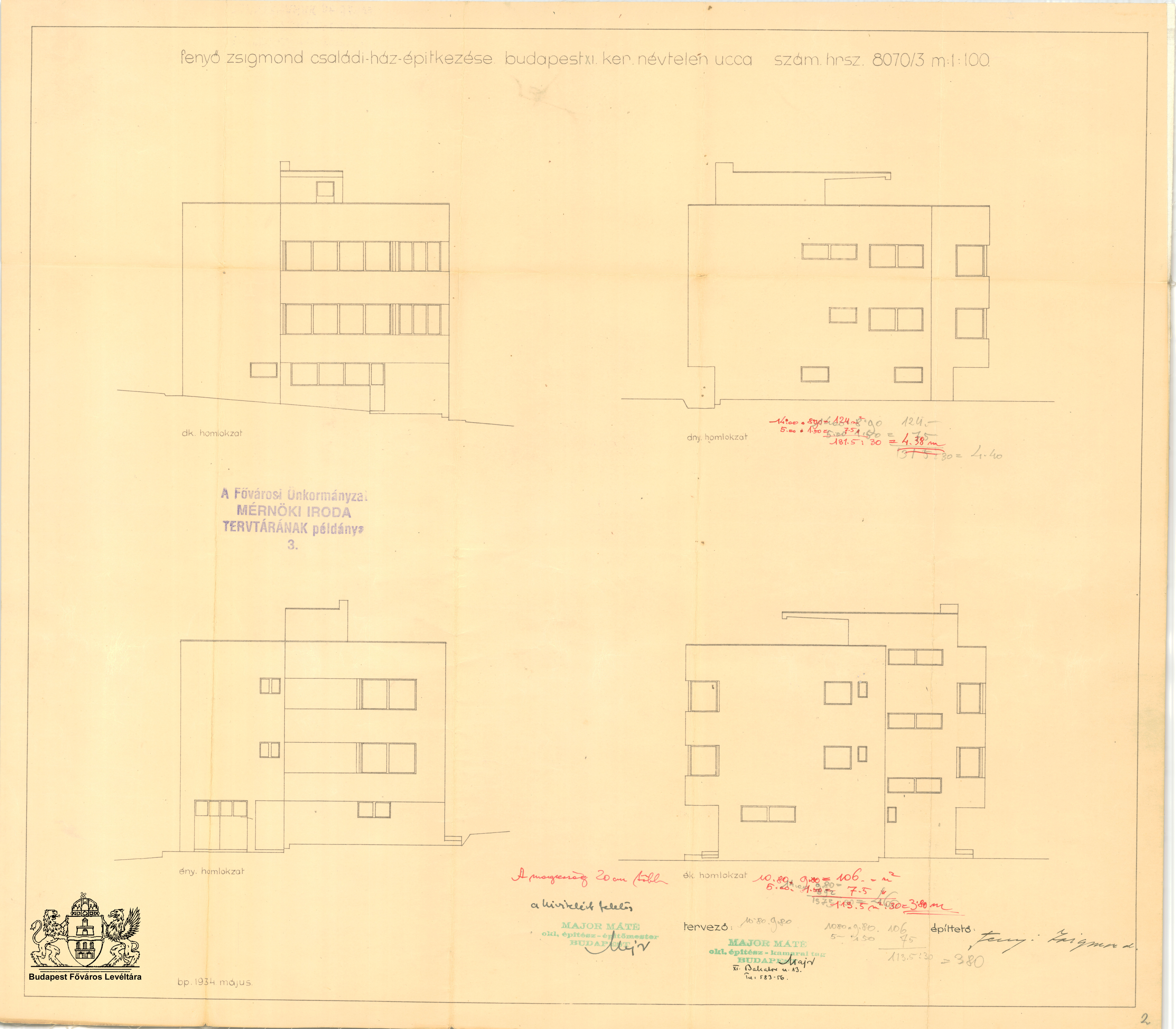 Sasfiók utca 8. Next Toggle image Homlokzatok Type of document Tervek Date of creation 1934.05 Collection Budapest Főváros Levéltára Related work Sasfiók utca 8. Reference code XV.17.d.329 Letöltés Next