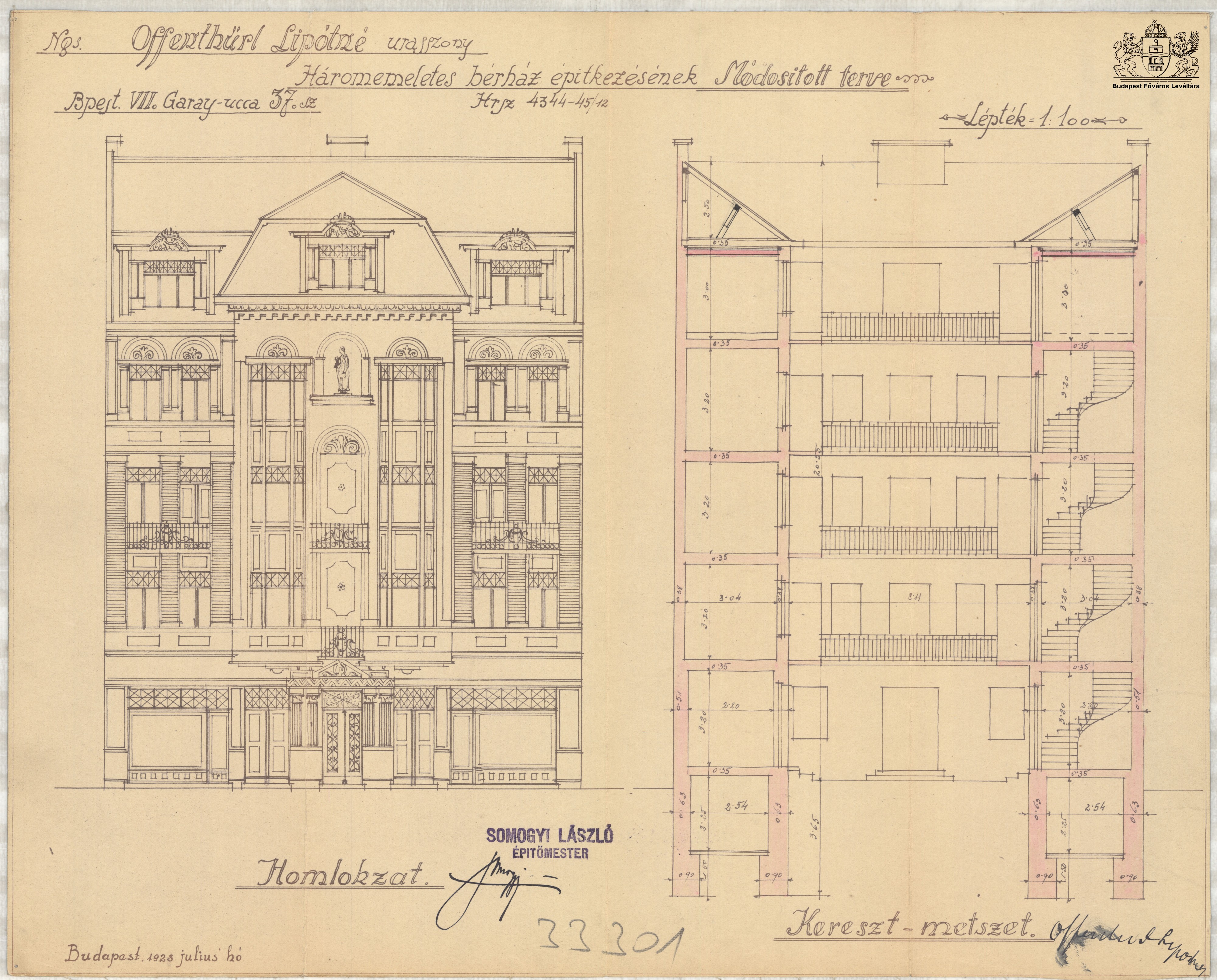 Garay utca 37. PreviousNext Toggle image homlokzati/keresztmetszeti terv Type of document Tervrajz Date of creation 1928 Collection Budapest Főváros Levéltára Related work Garay utca 37. Reference code XV.17.d.329 Letöltés PreviousNext