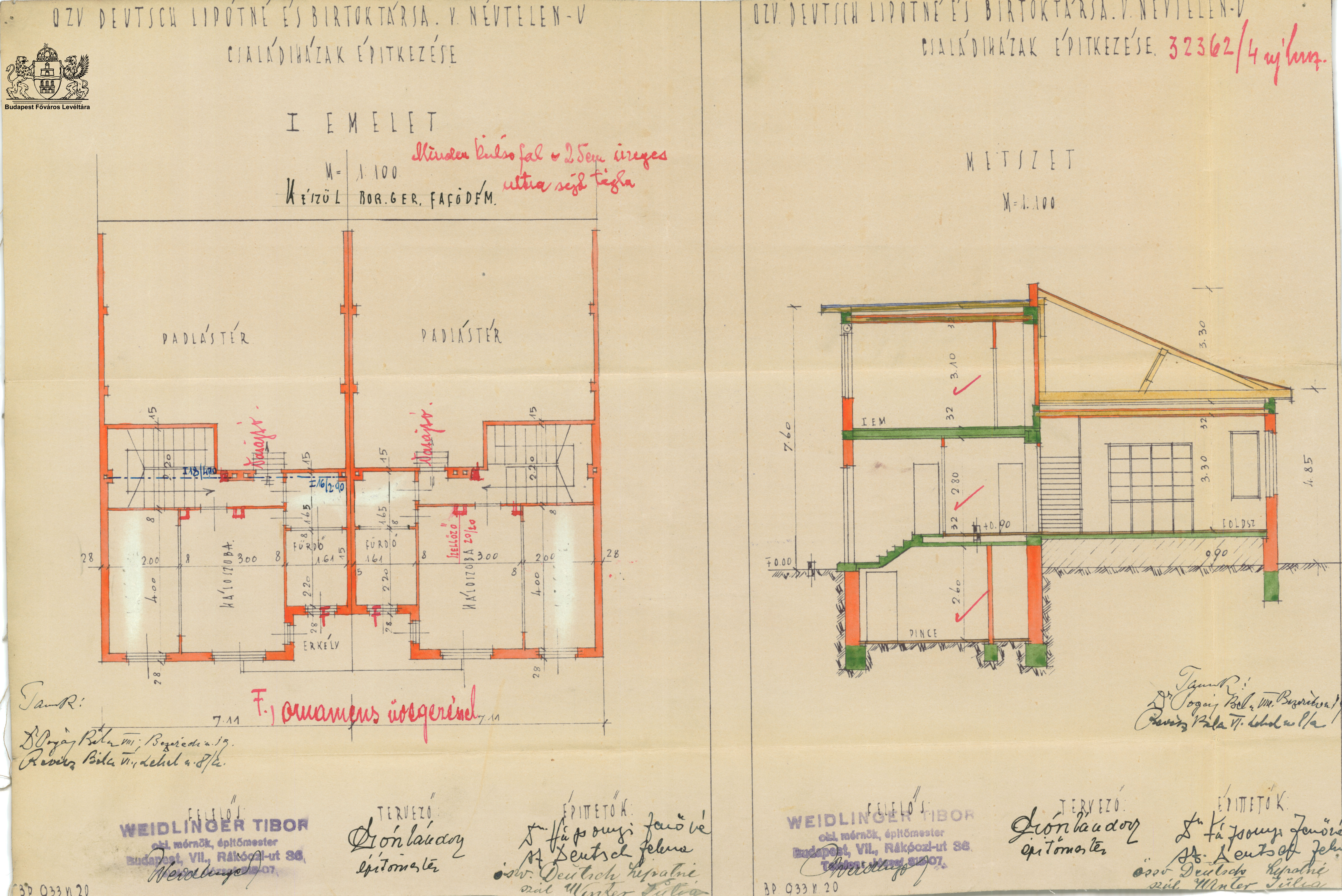 Építtető: özv. Deutsch Lipótné sz. Winker Júlia, dr. Vázsonyi Jenőné sz. Deutsch Zelma