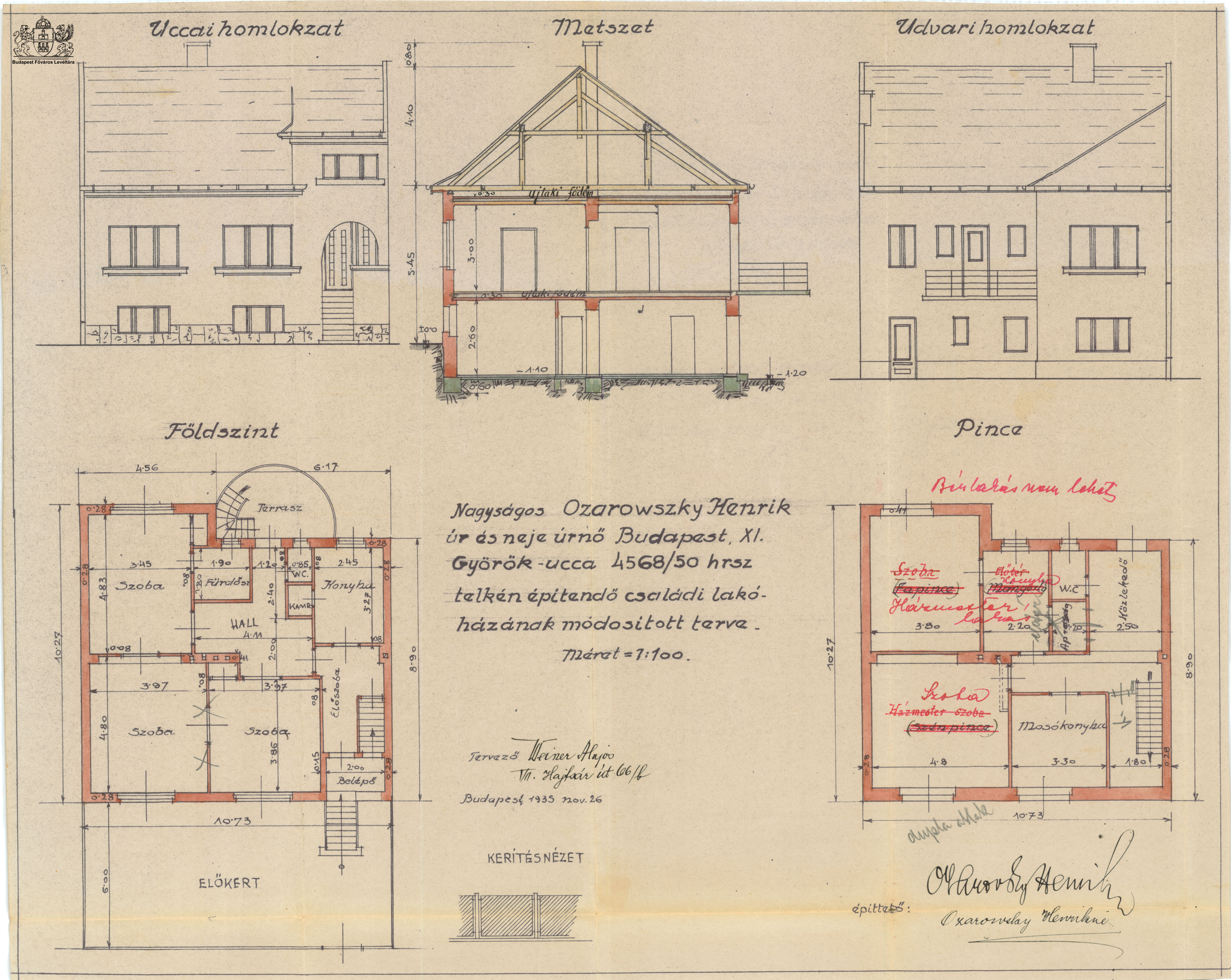 Sorházak a Györök utcában és a Takács Menyhért utcában PreviousNext Toggle image Györök utca 19. (módosított terv) Építtető: Ozarowsky Henrik és Ozarowsky Henrikné Tervező: Weiner Alajos Épült: 1935 Type of document Egyéni építkezések Date of creation 1935.11.26 Collection Budapest Főváros Levéltára Related work Sorházak a Györök utcában és a Takács Menyhért utcában Reference code XV.17.d.329 4568/50 Letöltés PreviousNext