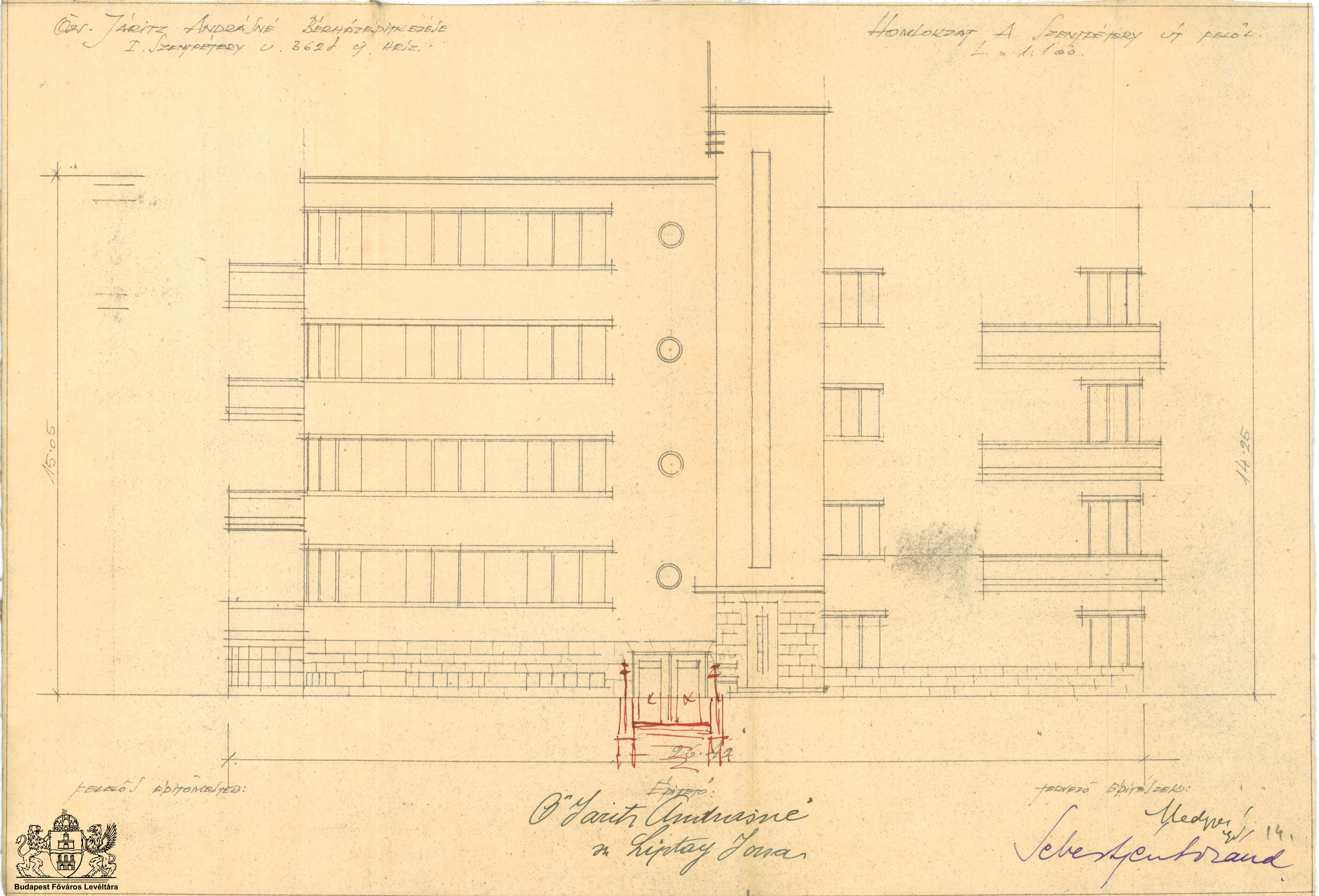 Szentpétery utca 3. PreviousNext Toggle image Homlokzat (módosított terv II.) Type of document Tervek Date of creation 1933 Collection Budapest Főváros Levéltára Related work Szentpétery utca 3. Reference code XV.17.d.329 Letöltés PreviousNext
