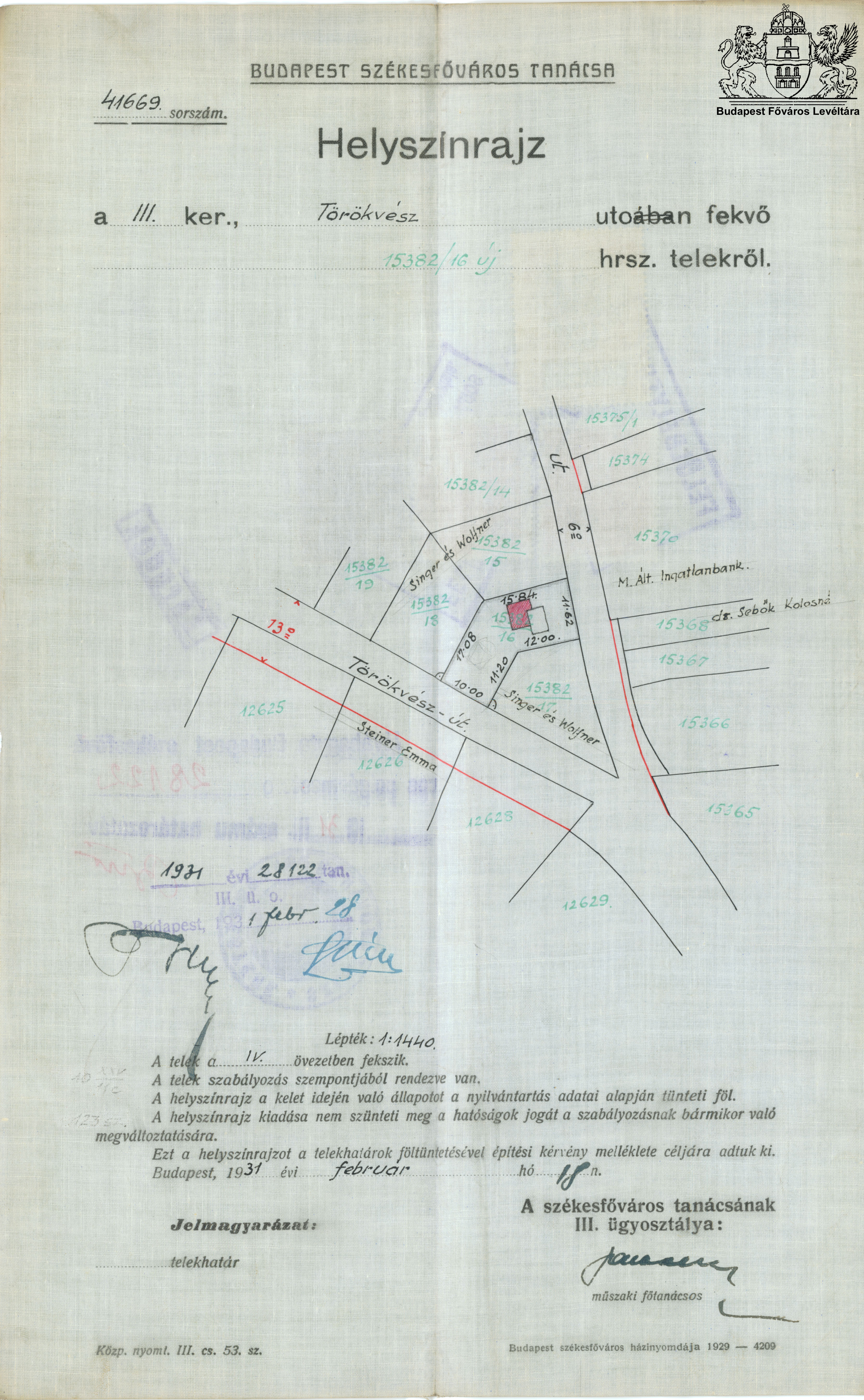 Törökvész út 7/b Next Toggle image Helyszínrajz Type of document Tervek Date of creation 1931.02.18 Collection Budapest Főváros Levéltára Related work Törökvész út 7/b Reference code XV.17.d.329 Letöltés Next