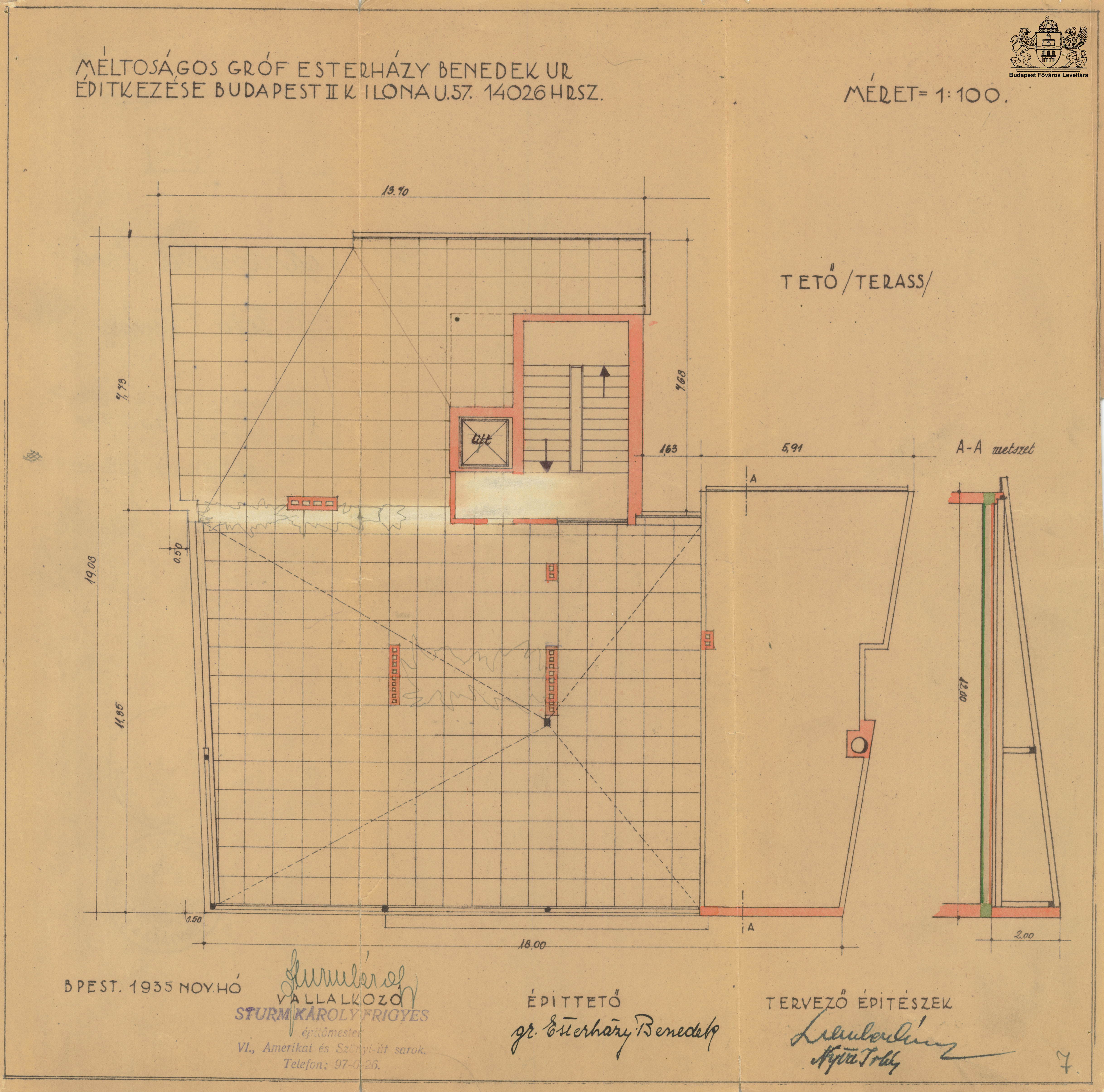 Szabó Ilonka utca 57. PreviousNext Toggle image Tető módosított alaprajza Type of document Tervek Date of creation 1935.11 Collection Budapest Főváros Levéltára Related work Szabó Ilonka utca 57. Reference code XV.17.d.329 Letöltés PreviousNext