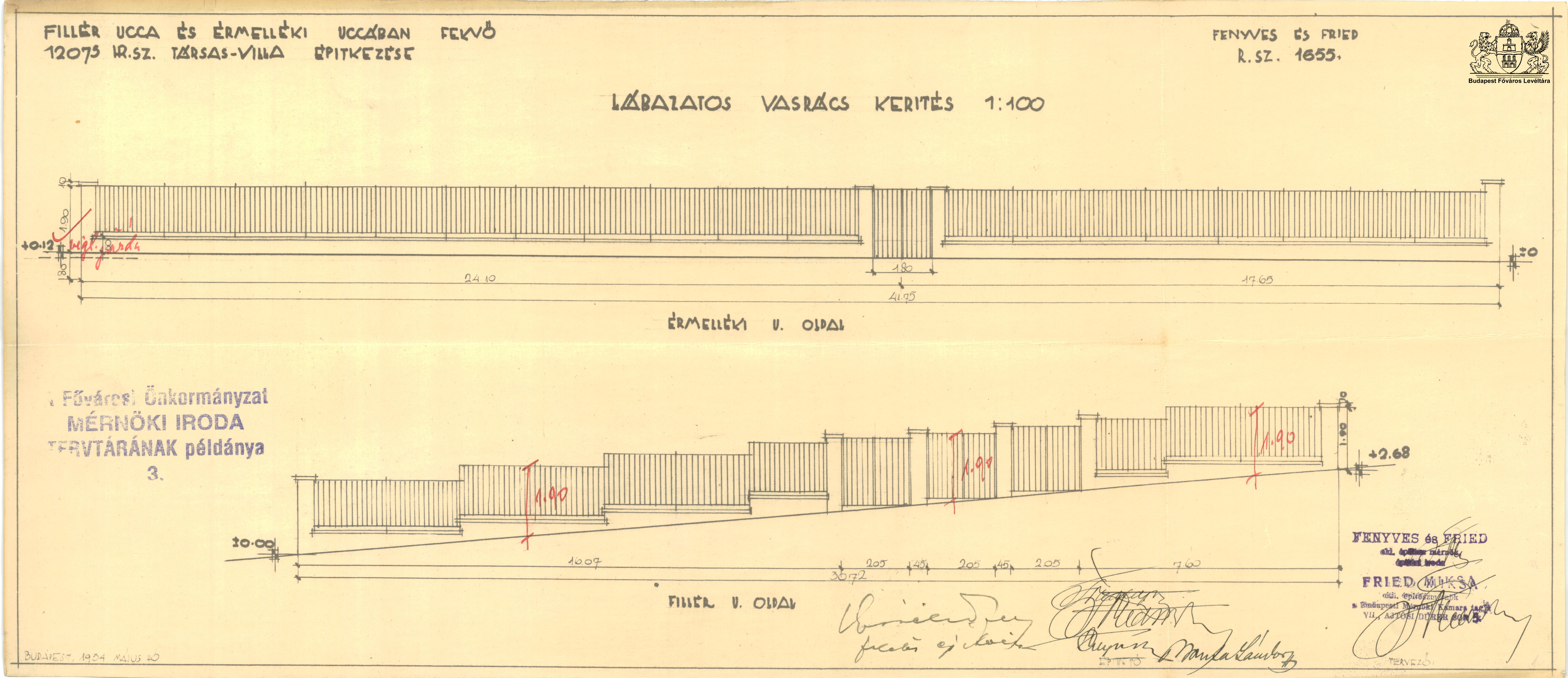 Fillér utca 32. PreviousNext Toggle image Kerítésterv Type of document Tervek Date of creation 1934.05 Collection Budapest Főváros Levéltára Related work Fillér utca 32. Reference code XV.17.d.329 Letöltés PreviousNext