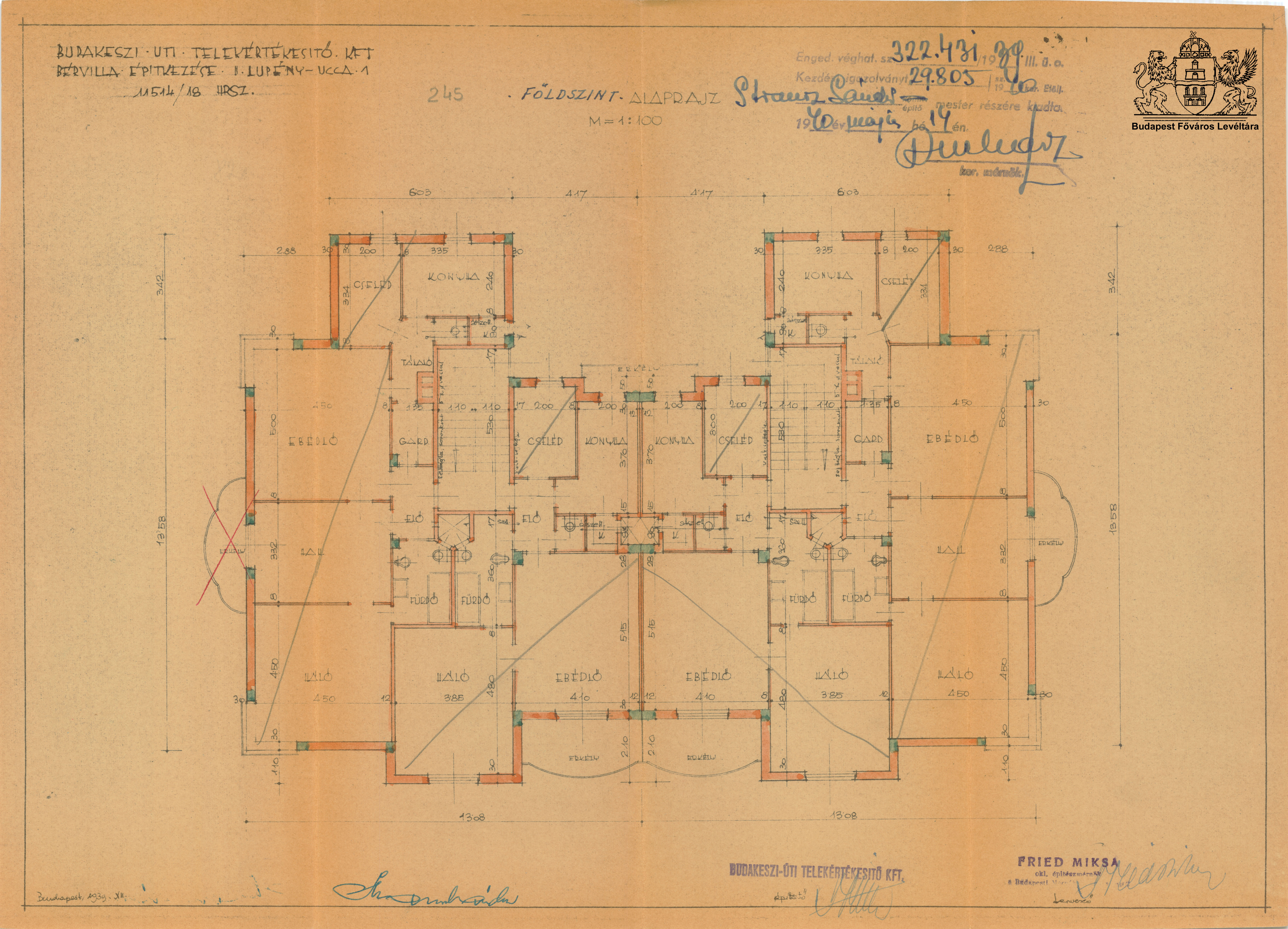Lupény utca 1/a-b és 3/a-b PreviousNext Toggle image Földszinti alaprajz Type of document Tervek Date of creation 1939.12 Collection Budapest Főváros Levéltára Related work Lupény utca 1/a-b és 3/a-b Reference code XV.17.d.329 Letöltés PreviousNext