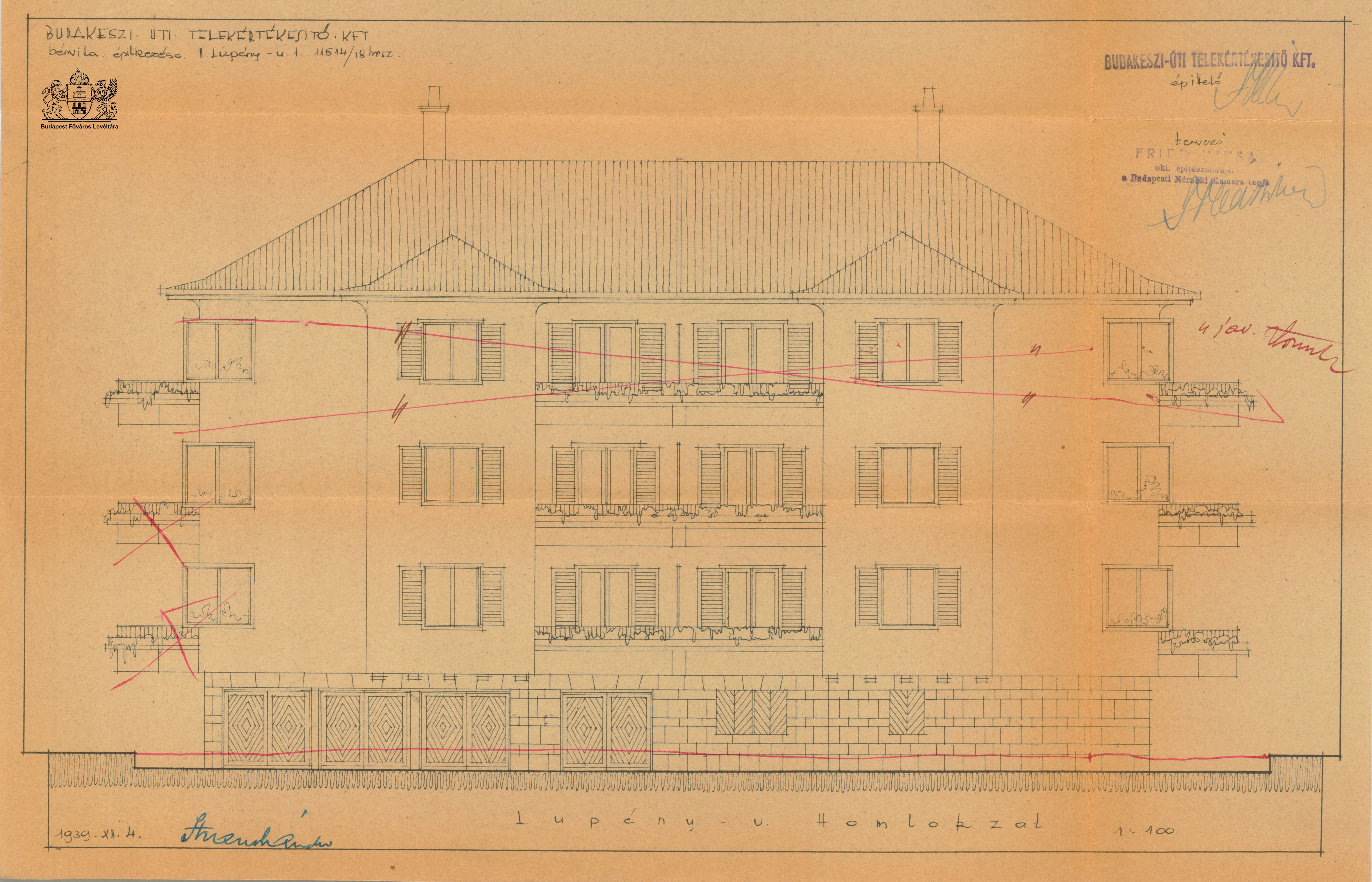 Lupény utca 1/a-b és 3/a-b PreviousNext Toggle image Homlokzat (Lupény utca felé) Type of document Tervek Date of creation 1939.12.04 Collection Budapest Főváros Levéltára Related work Lupény utca 1/a-b és 3/a-b Reference code XV.17.d.329 Letöltés PreviousNext