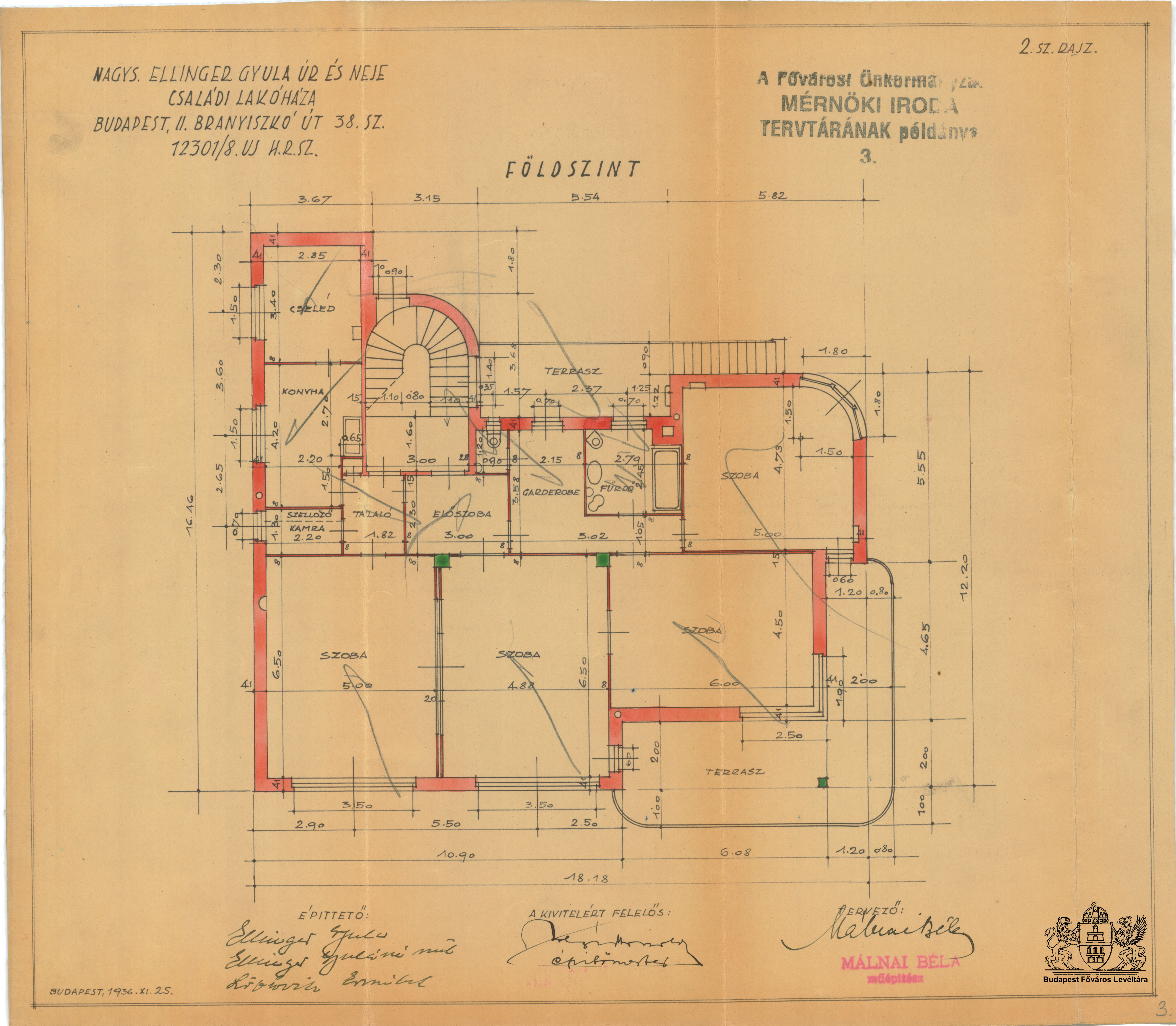 Virág árok 17./Branyiszkó út 38. PreviousNext Toggle image Földszinti alaprajz Type of document Tervek Date of creation 1936.11.25 Collection Budapest Főváros Levéltára Related work Virág árok 17./Branyiszkó út 38. Reference code XV.17.d.329 Letöltés PreviousNext