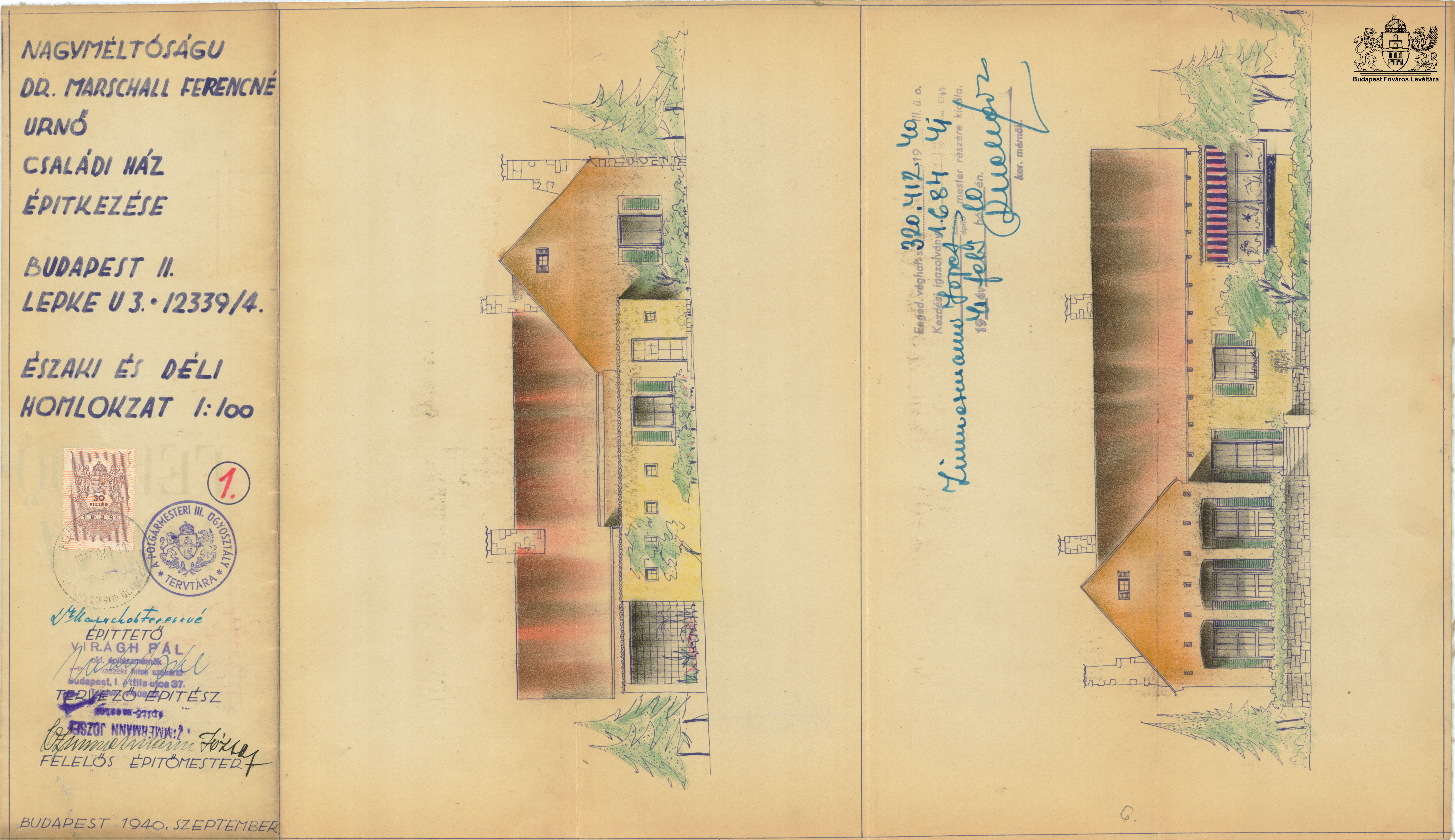 Lepke utca 3. Previous Toggle image Homlokzatok (északi és déli) Type of document Tervek Date of creation 1940.09 Collection Budapest Főváros Levéltára Related work Lepke utca 3. Reference code XV.17.d.329 Letöltés Previous