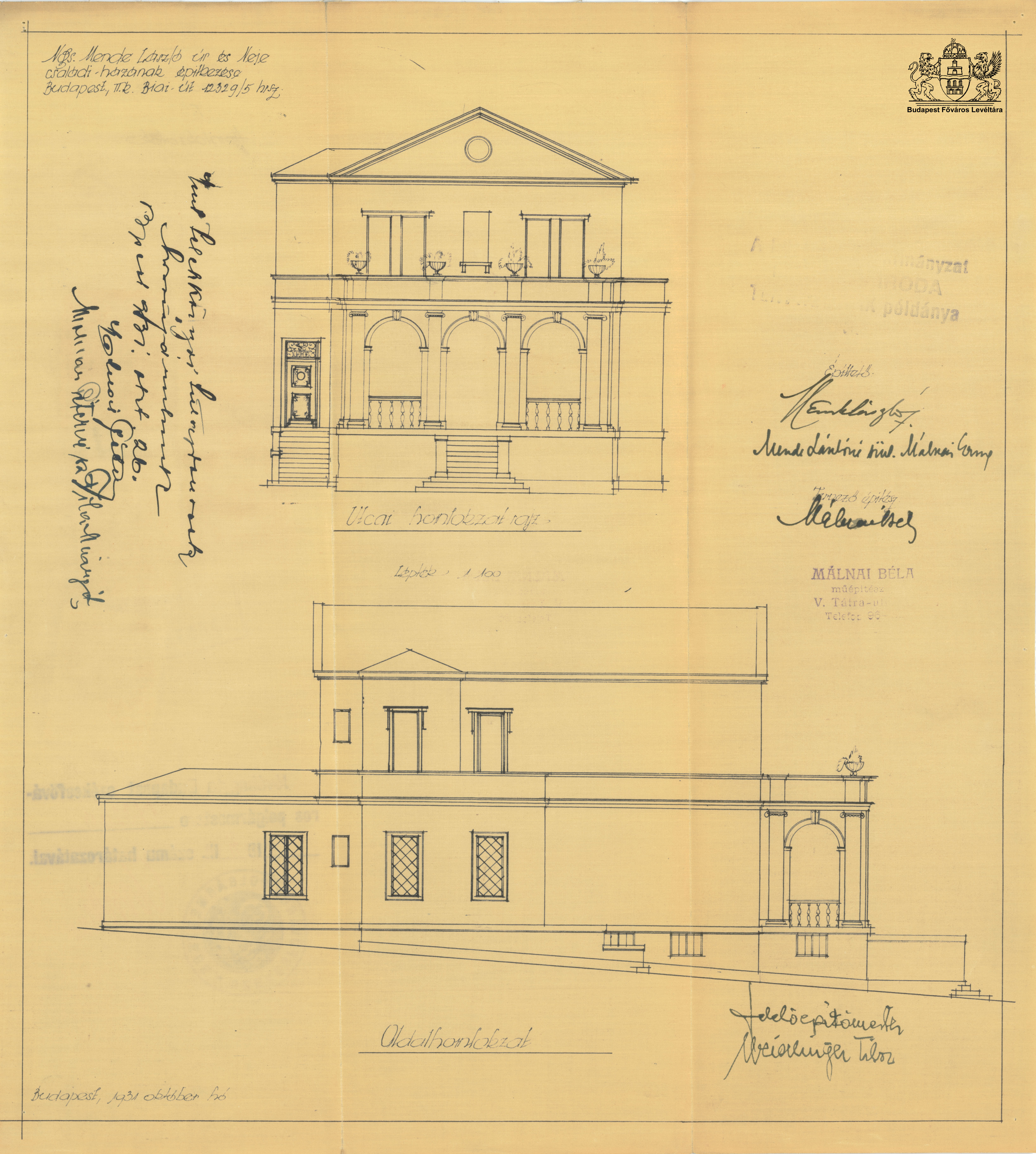Orló utca 7. PreviousNext Toggle image Homlokzatok Type of document Tervek Date of creation 1931.10 Collection Budapest Főváros Levéltára Related work Orló utca 7. Reference code XV.17.d.329 Letöltés PreviousNext