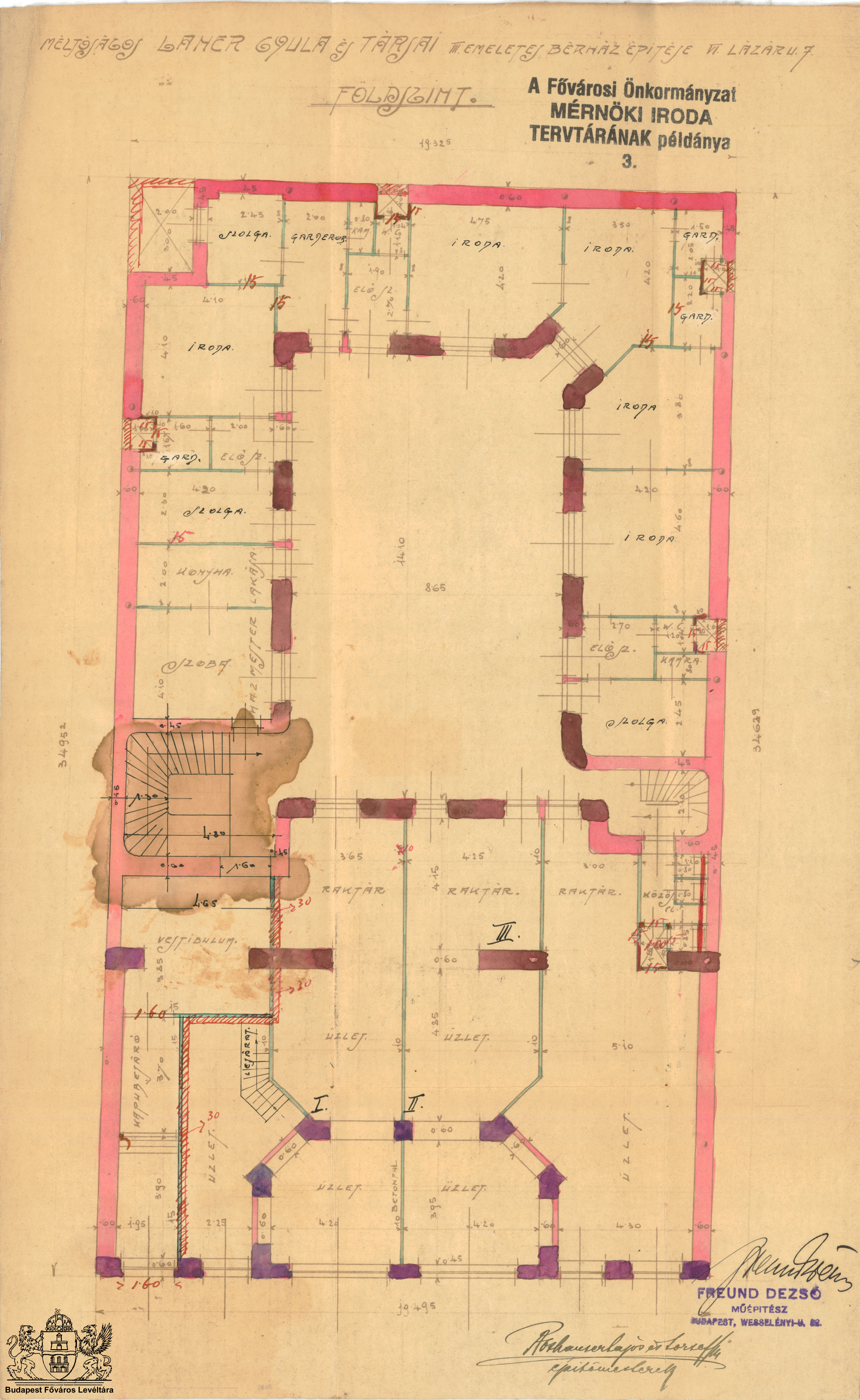 Lázár utca 7. és 9. Next Toggle image Földszinti alaprajz Type of document Tervek Date of creation 1911 Collection Budapest Főváros Levéltára Related work Lázár utca 7. és 9. Reference code XV.17.d.329 Letöltés Next