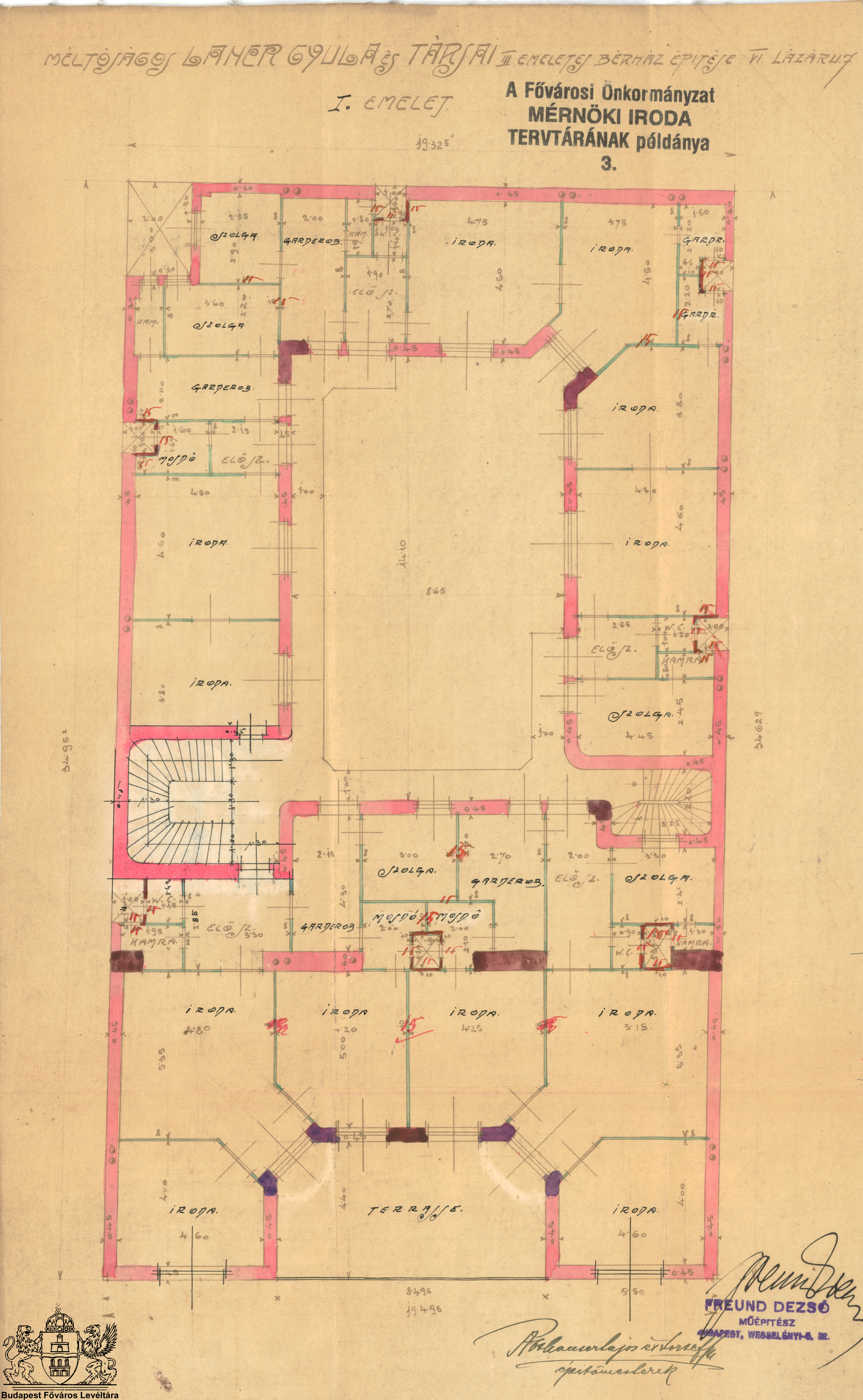 Lázár utca 7. és 9. PreviousNext Toggle image I. emeleti alaprajz Type of document Tervek Date of creation 1911 Collection Budapest Főváros Levéltára Related work Lázár utca 7. és 9. Reference code XV.17.d.329 Letöltés PreviousNext