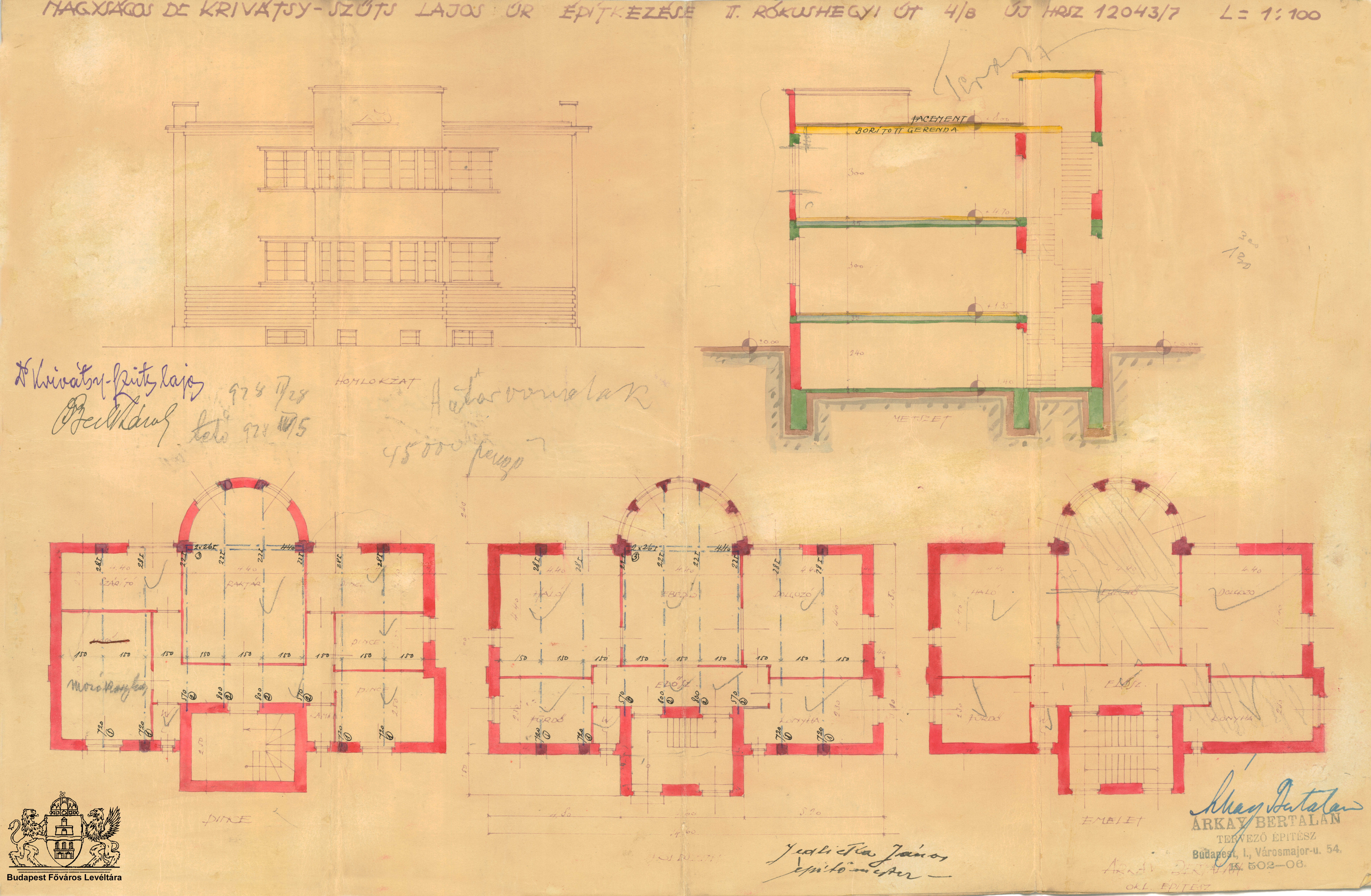 Lorántffy Zsuzsanna utca 6. Previous Toggle image Alaprajzok, homlokzat és metszet Type of document Dr. Krivátsy-Szűts Lajos családi ház-építkezése Date of creation 1928 Collection Budapest Főváros Levéltára Related work Lorántffy Zsuzsanna utca 6. Reference code XV.17.d.329 Letöltés Previous