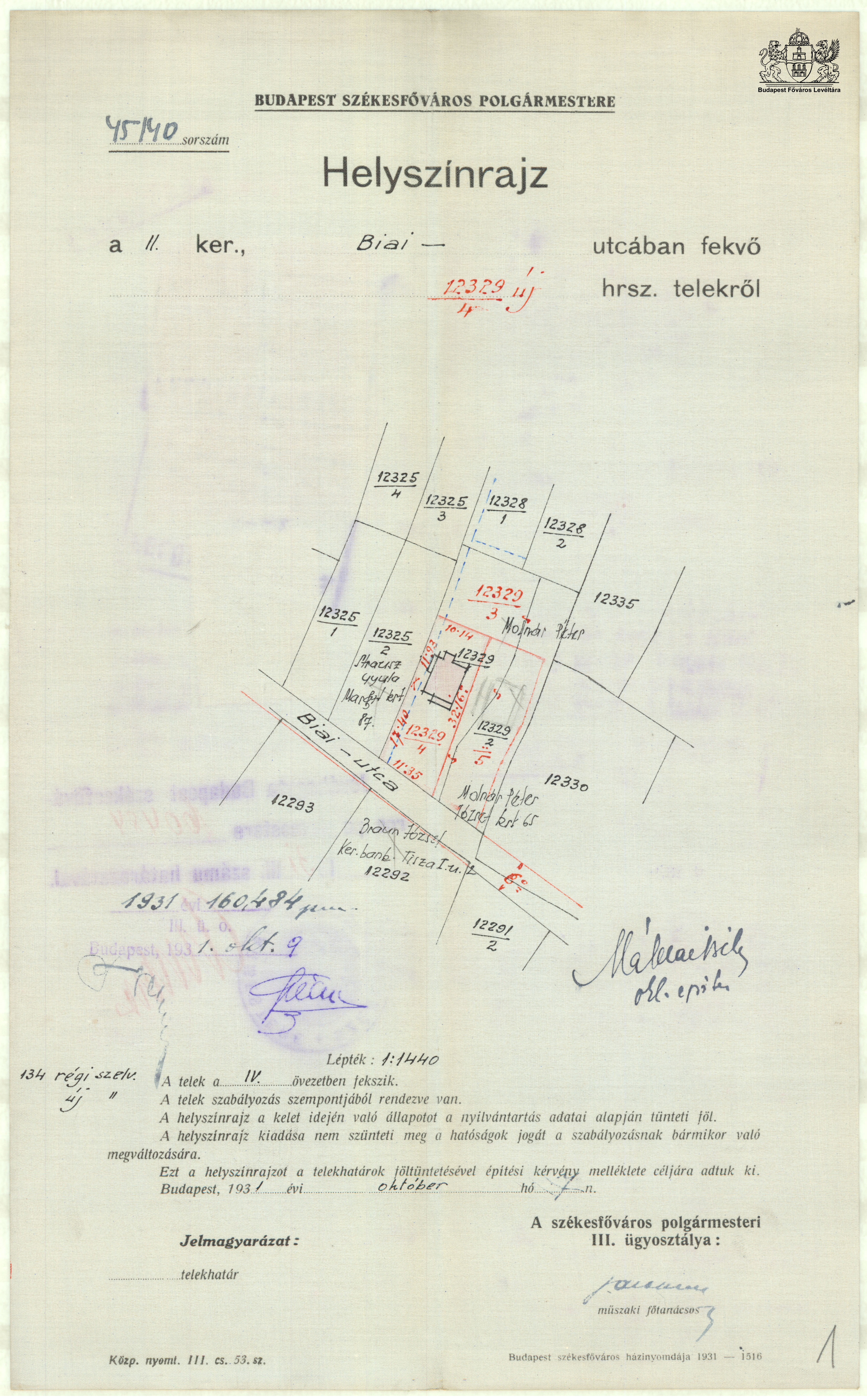 Orló utca 9. Next Toggle image Helyszínrajz Type of document Tervek Date of creation 1931.10.07 Collection Budapest Főváros Levéltára Related work Orló utca 9. Reference code XV.17.d.329 Letöltés Next