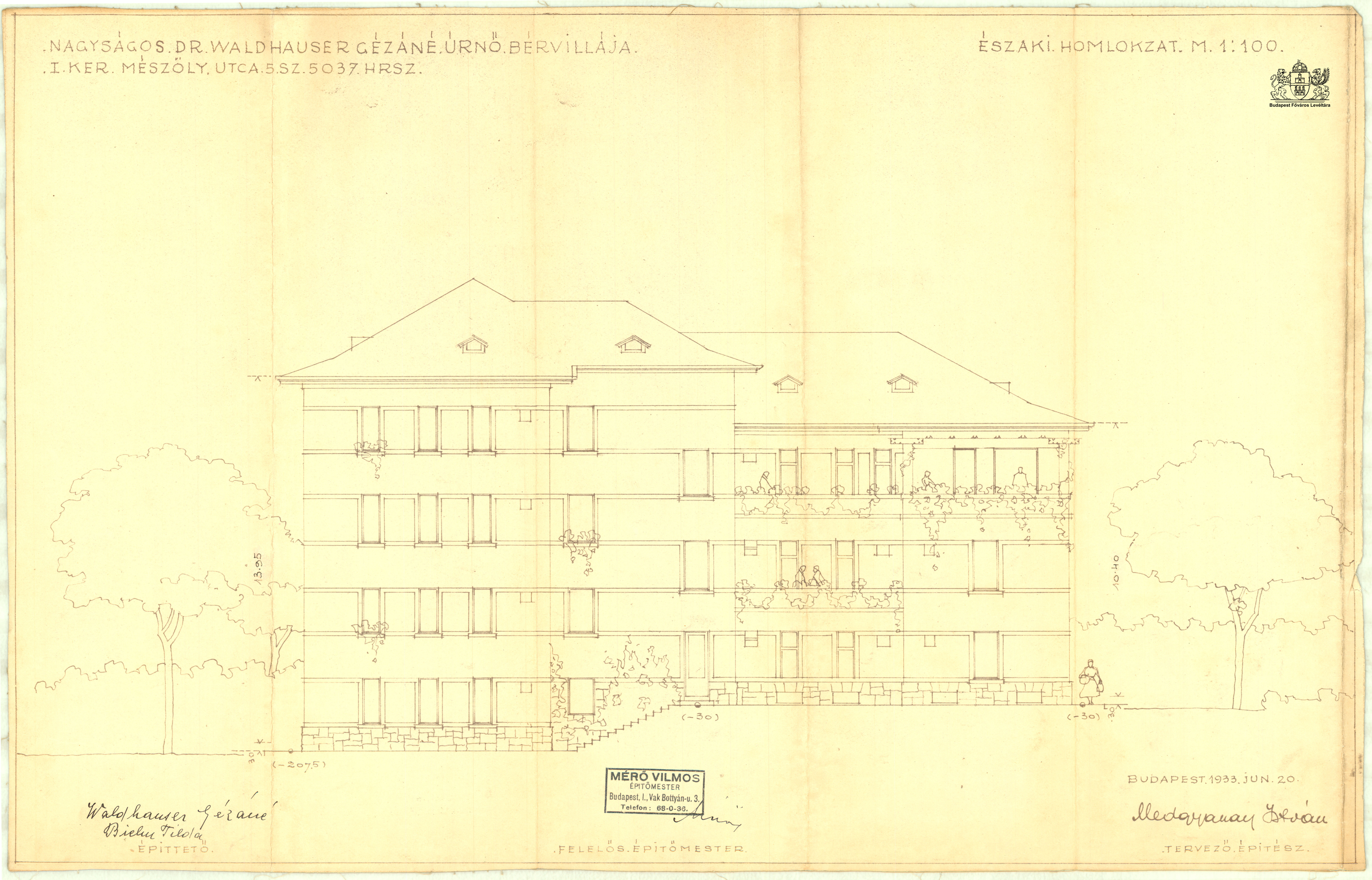 Mészöly utca 5. PreviousNext Toggle image Északi homlokzat Dokumentum típusa Tervek Keletkezés ideje 1933.06.20 Őrzési hely Budapest Főváros Levéltára Vonatkozó alkotás Mészöly utca 5. Jelzet XV.17.d.329 Letöltés PreviousNext