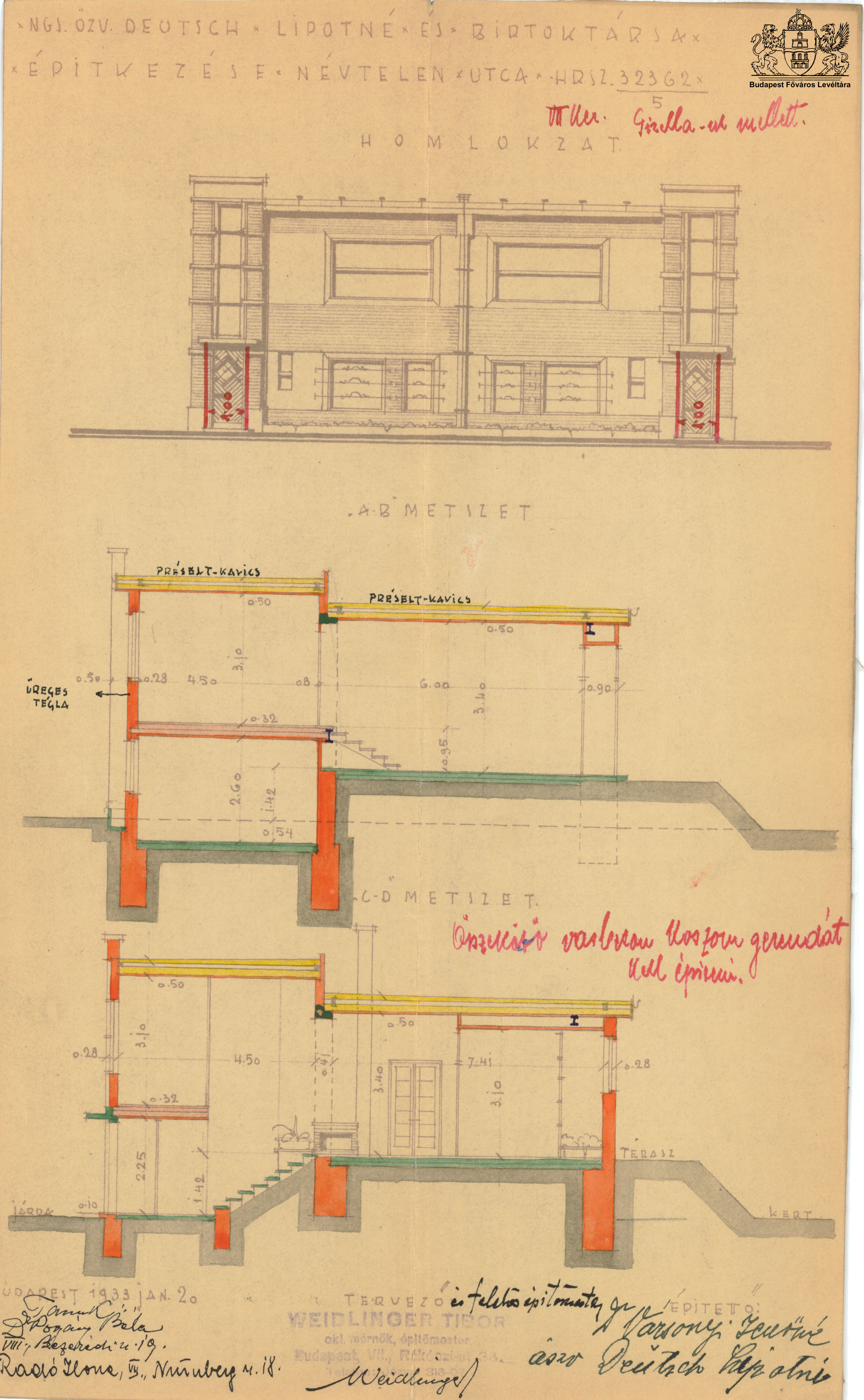 Építtető: özv. Deutsch Lipótné sz. Winker Júlia, dr. Vázsonyi Jenőné sz. Deutsch Zelma