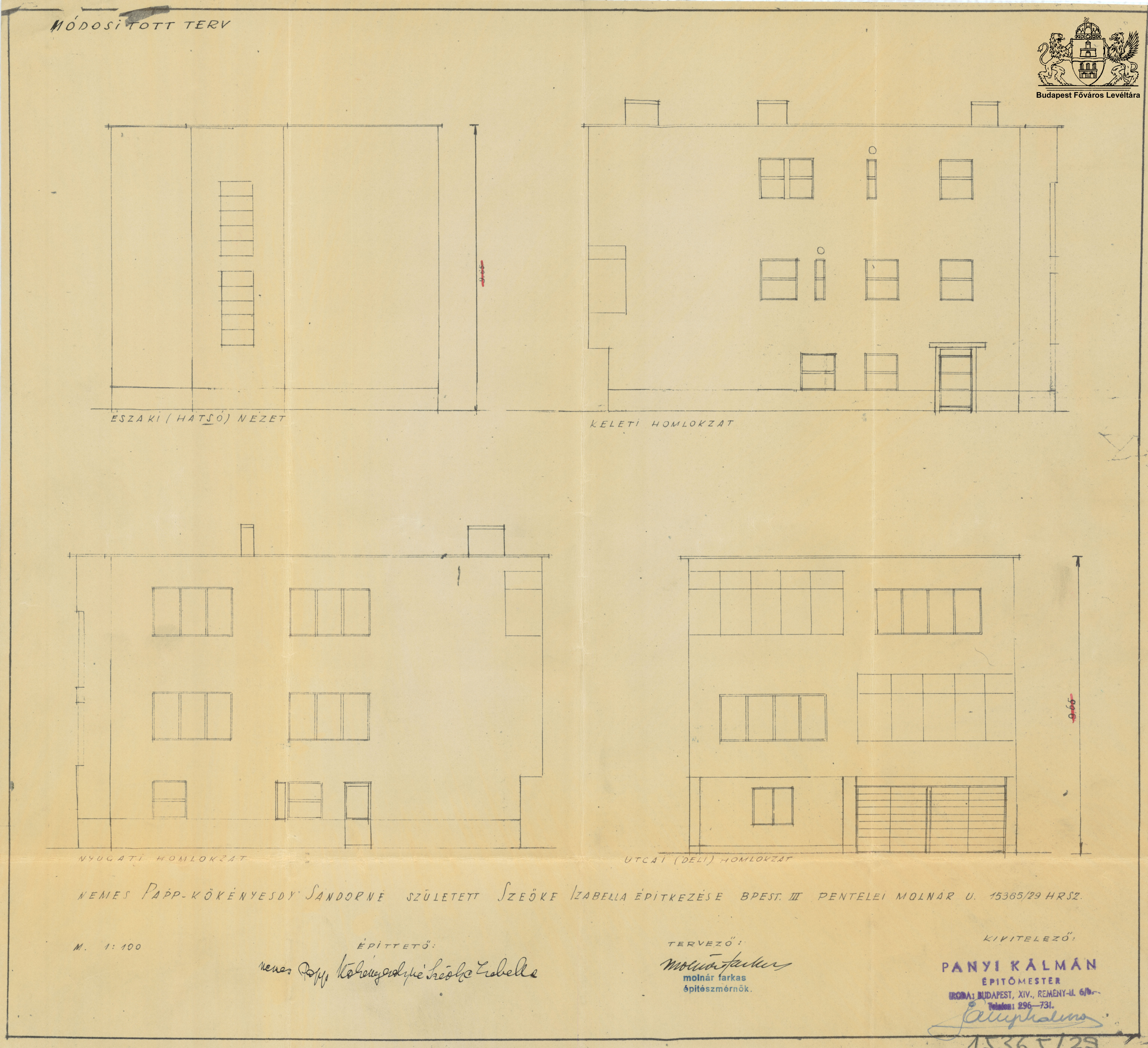 Pentelei Molnár utca 3. PreviousNext Toggle image Homlokzatok (módosított terv) Dokumentum típusa Tervek Keletkezés ideje 1940 Őrzési hely Budapest Főváros Levéltára Vonatkozó alkotás Pentelei Molnár utca 3. Jelzet XV.17.d.329 Letöltés PreviousNext