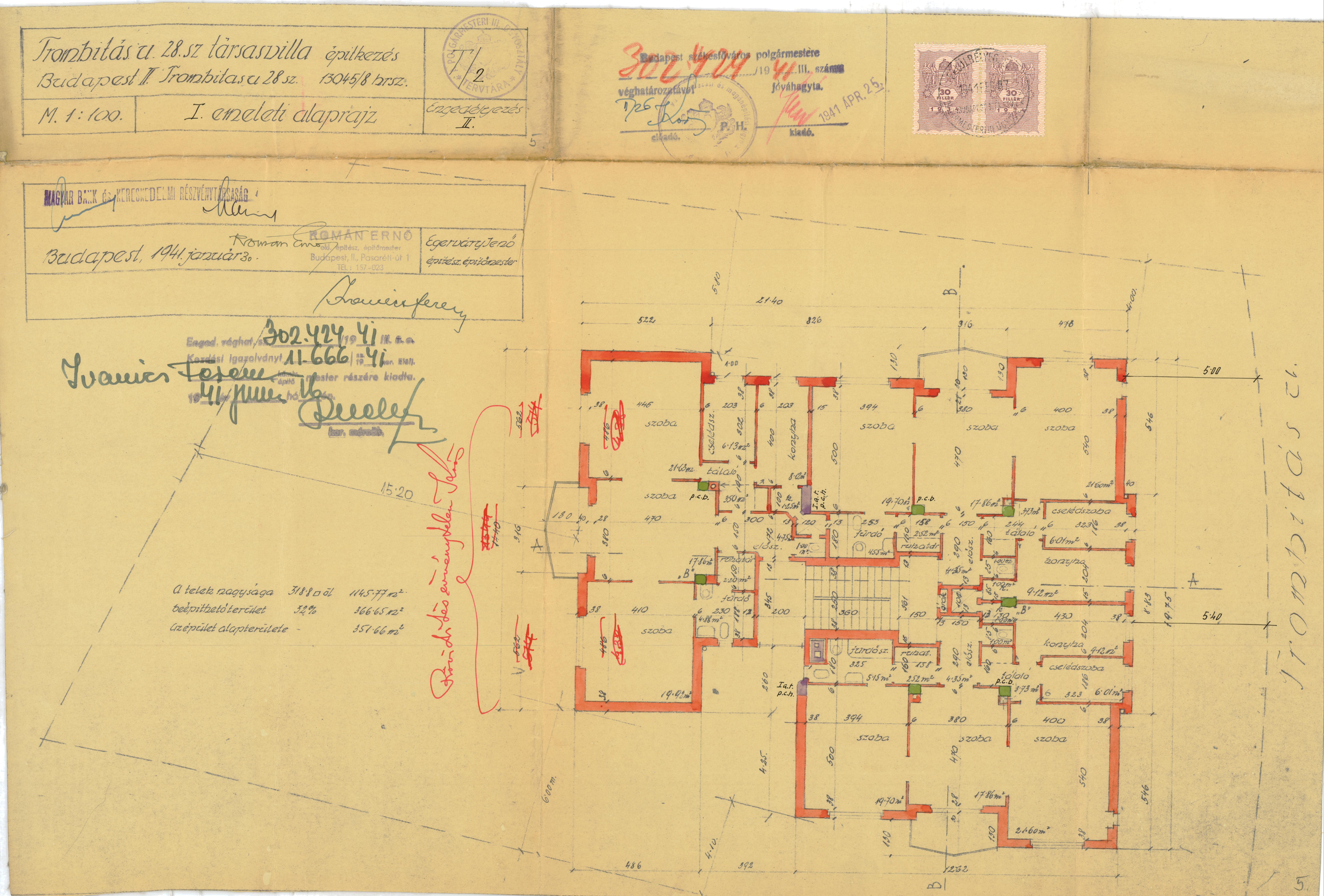 Trombitás út 28. PreviousNext Toggle image I. emeleti alaprajz Dokumentum típusa Tervek Keletkezés ideje 1941.01.30 Őrzési hely Budapest Főváros Levéltára Vonatkozó alkotás Trombitás út 28. Jelzet XV.17.d.329 Letöltés PreviousNext
