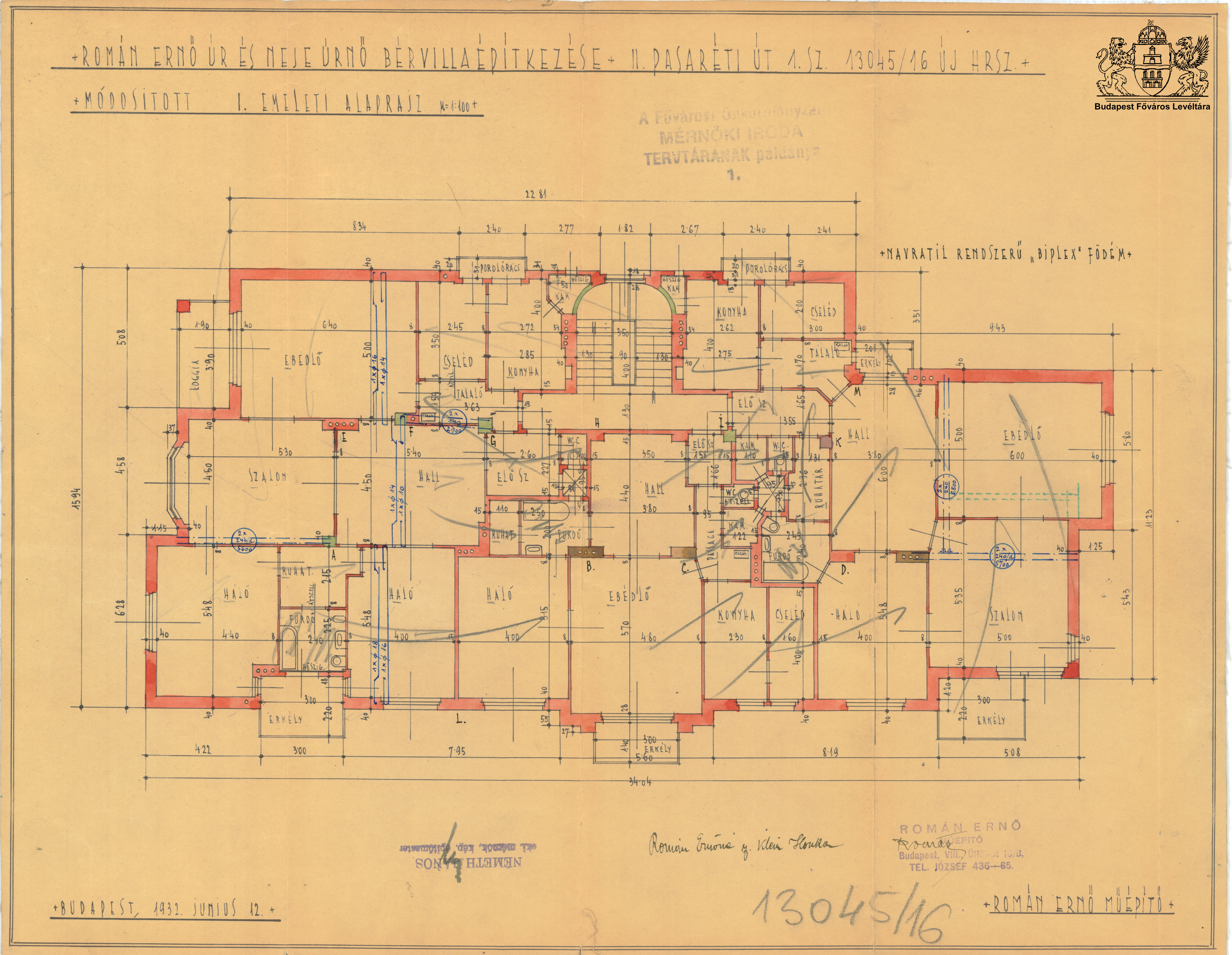 Pasaréti út 1. PreviousNext Toggle image I. emeleti alaprajz (módosított terv) Dokumentum típusa Tervek Keletkezés ideje 1932.06.12 Őrzési hely Budapest Főváros Levéltára Vonatkozó alkotás Pasaréti út 1. Jelzet XV.17.d.329 Letöltés PreviousNext