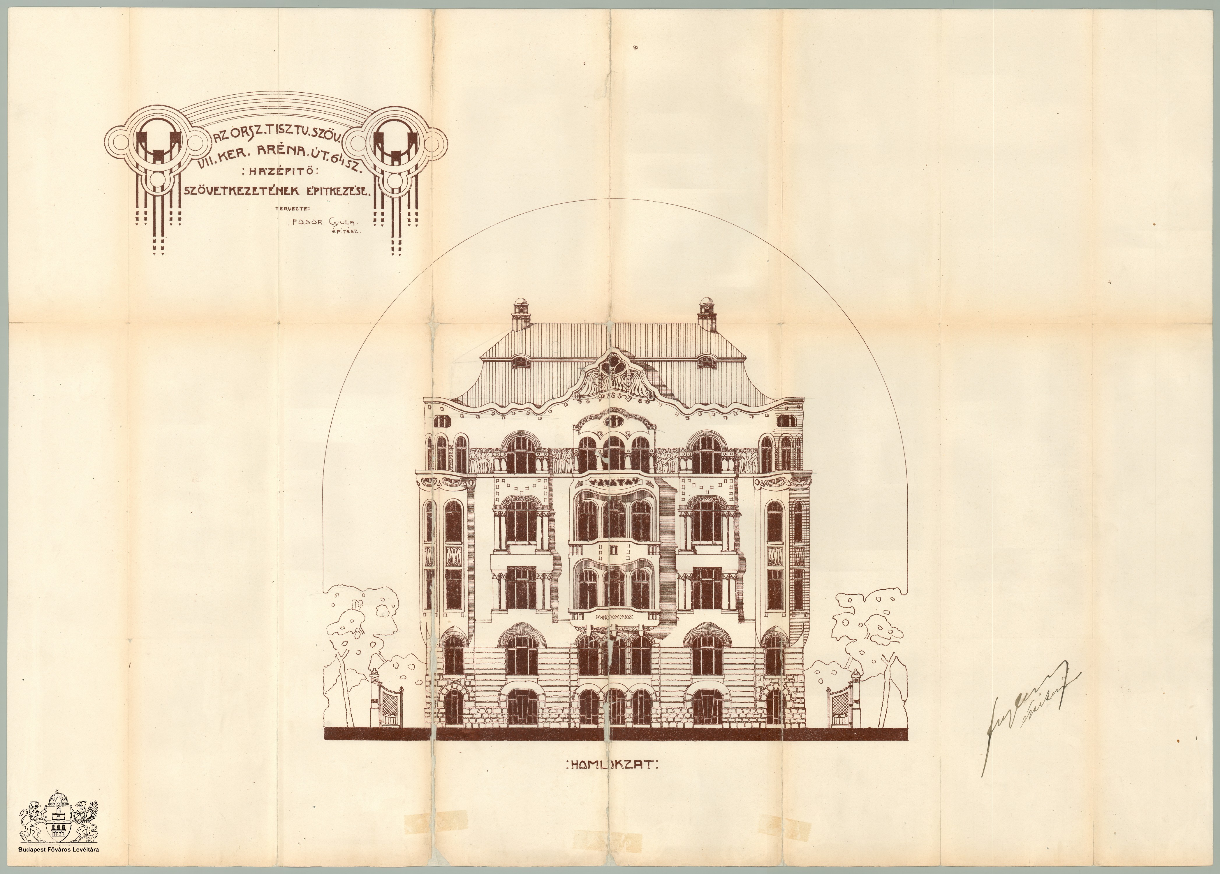 Dózsa György út 64. Previous Toggle image Homlokzat Type of document Tervek Date of creation 1908 Collection Budapest Főváros Levéltára Related work Dózsa György út 64. Reference code XV.17.d.329 Letöltés Previous