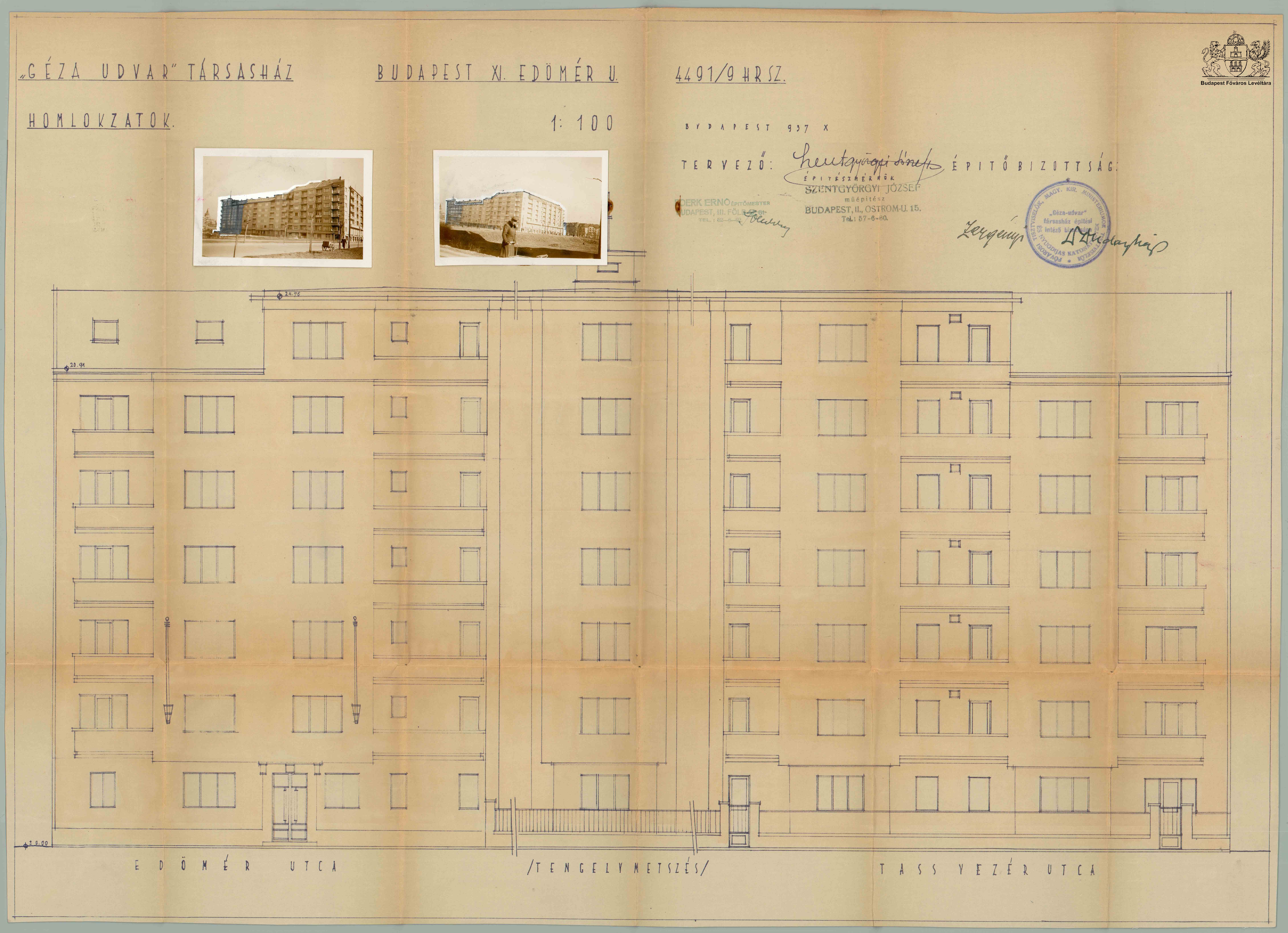 Edömér utca 6./Tas vezér utca 16. (Géza-udvar) PreviousNext Toggle image Homlokzatok Type of document Tervek Date of creation 1937.10 Collection Budapest Főváros Levéltára Related work Edömér utca 6./Tas vezér utca 16. (Géza-udvar) Reference code XV.17.d.329 Letöltés PreviousNext