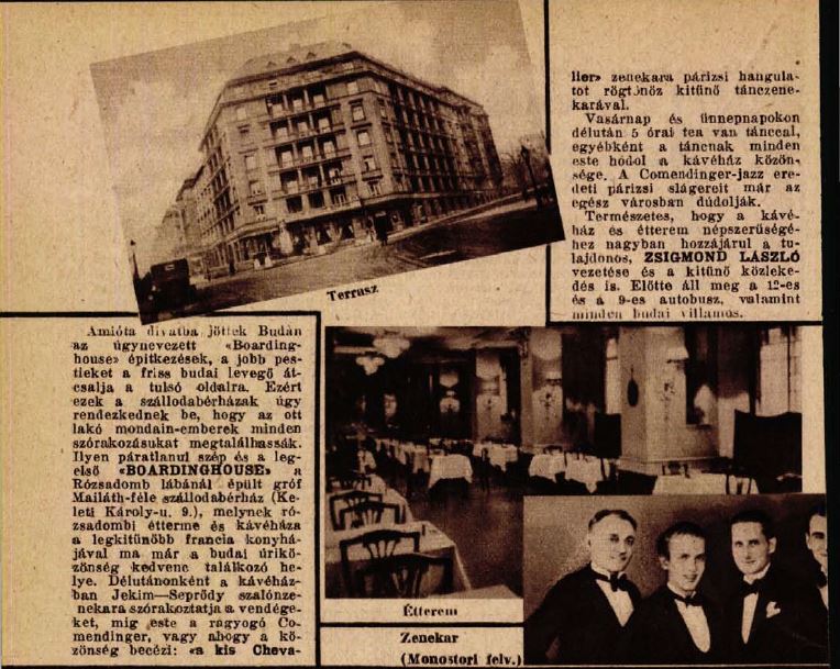 Mailáth bérházak: szálloda-bérház Toggle image Reklámcikk az átadott boarding-house-ról Type of document Reklámcikk az átadott boarding-house-ról Date of creation 1931 Related work Mailáth bérházak: szálloda-bérház Reference code Színházi Élet 1931./18. Letöltés