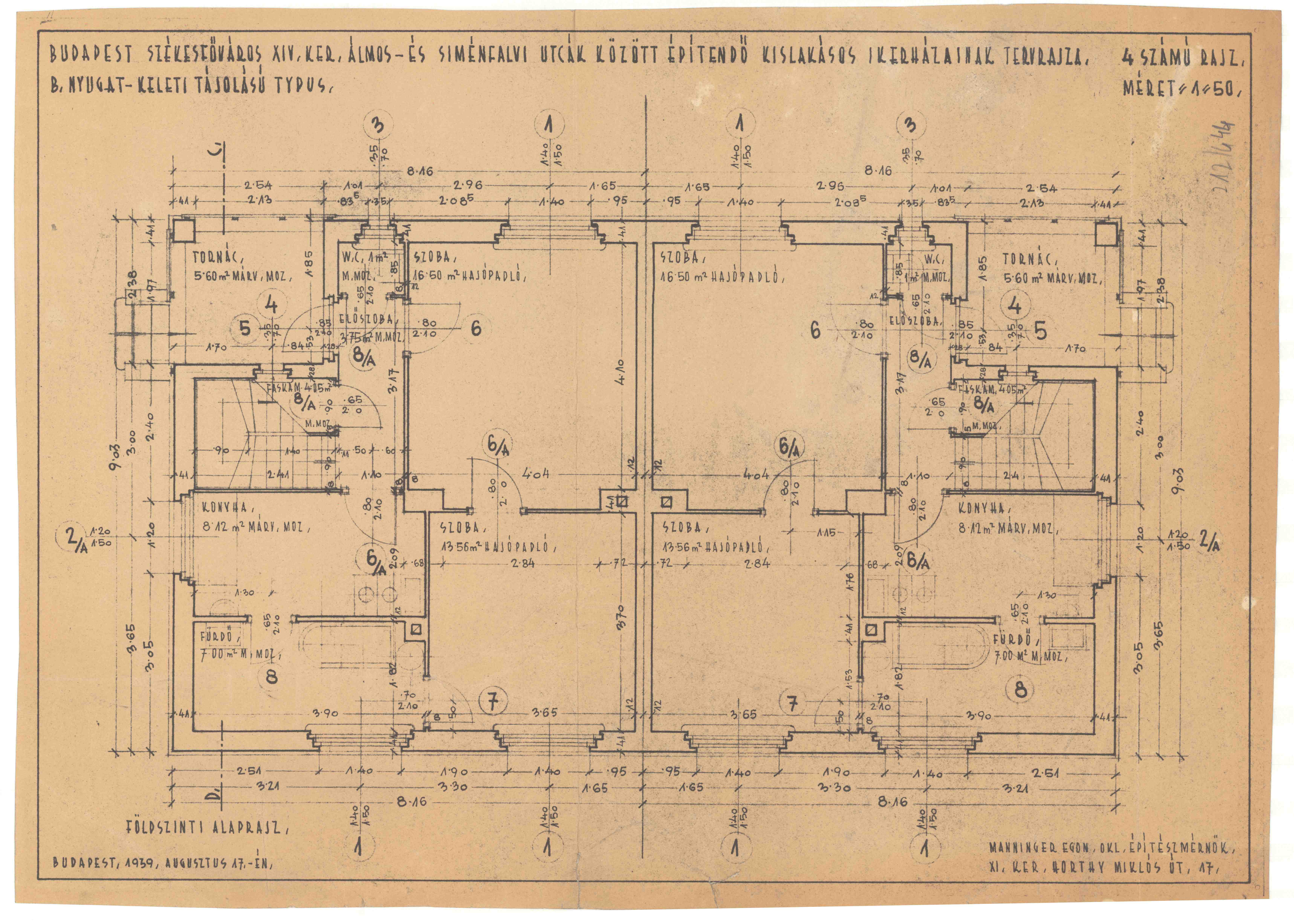XIV. Álmos utcai ikerház telep PreviousNext Toggle image XIV. Álmos utca - Siménfalvy utca között építendő ikerházak terve, nyugat-keleti tájolású típus, alaprajz Type of document Tervrajz Date of creation 1939 Collection Budapest Főváros Levéltára Related work XIV. Álmos utcai ikerház telep Reference code HU BFL XV.17.d.328 - 2326. 212/444 Author Manninger Egon Client Budapest Székesfőváros Letöltés PreviousNext