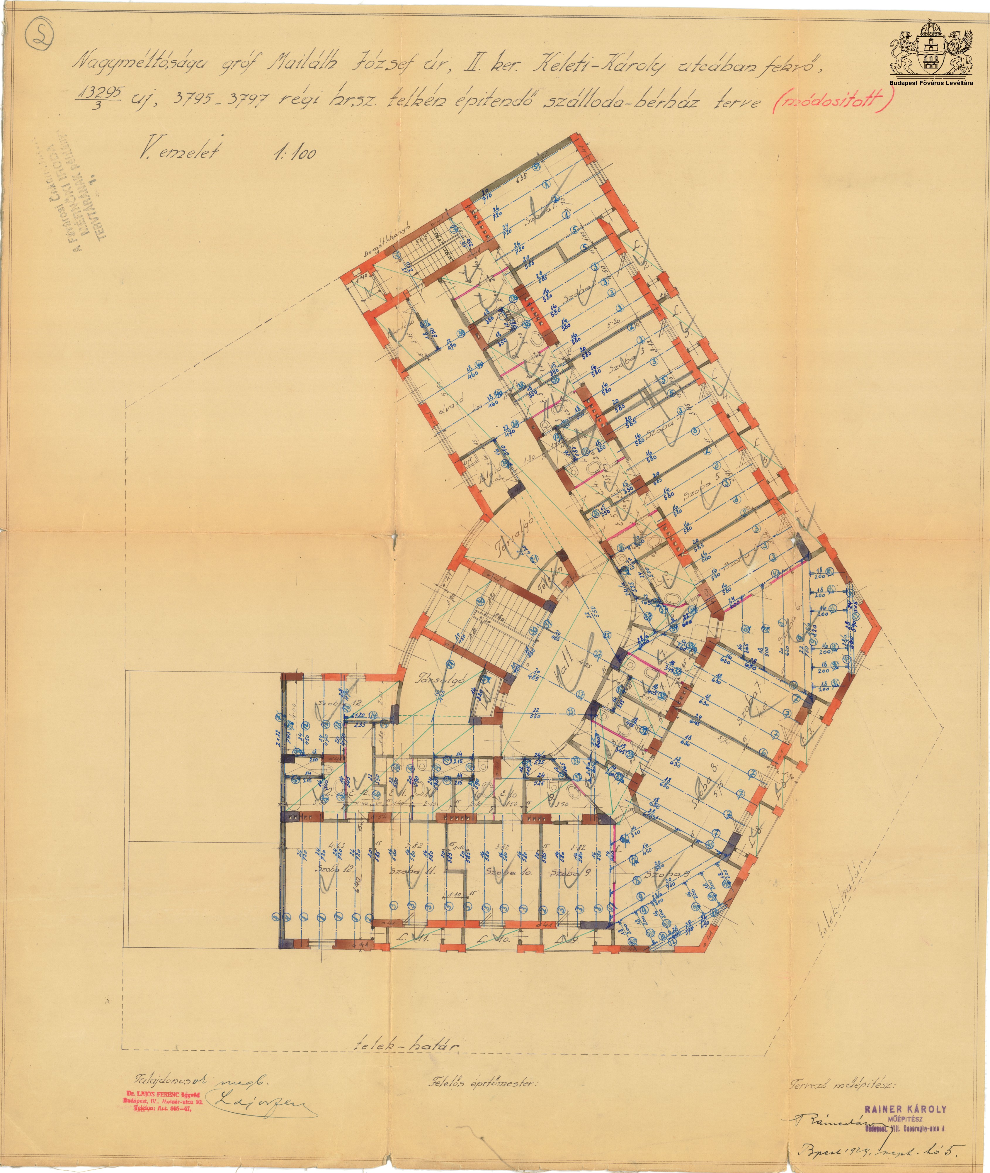 Mailáth bérházak: szálloda-bérház PreviousNext Toggle image V. emeleti módosított alaprajz Type of document Tervrajz Date of creation 1929 Collection Budapest Főváros Levéltára Related work Mailáth bérházak: szálloda-bérház Reference code XV.17.d.329 Letöltés PreviousNext