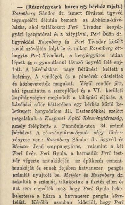 Pannónia utca 34. Next Toggle image Részvényesek harca 1. Type of document Bérházháború Date of creation 1931.08.04 Related work Pannónia utca 34. Reference code Budapesti Hírlap 1931.08.04. Letöltés Next