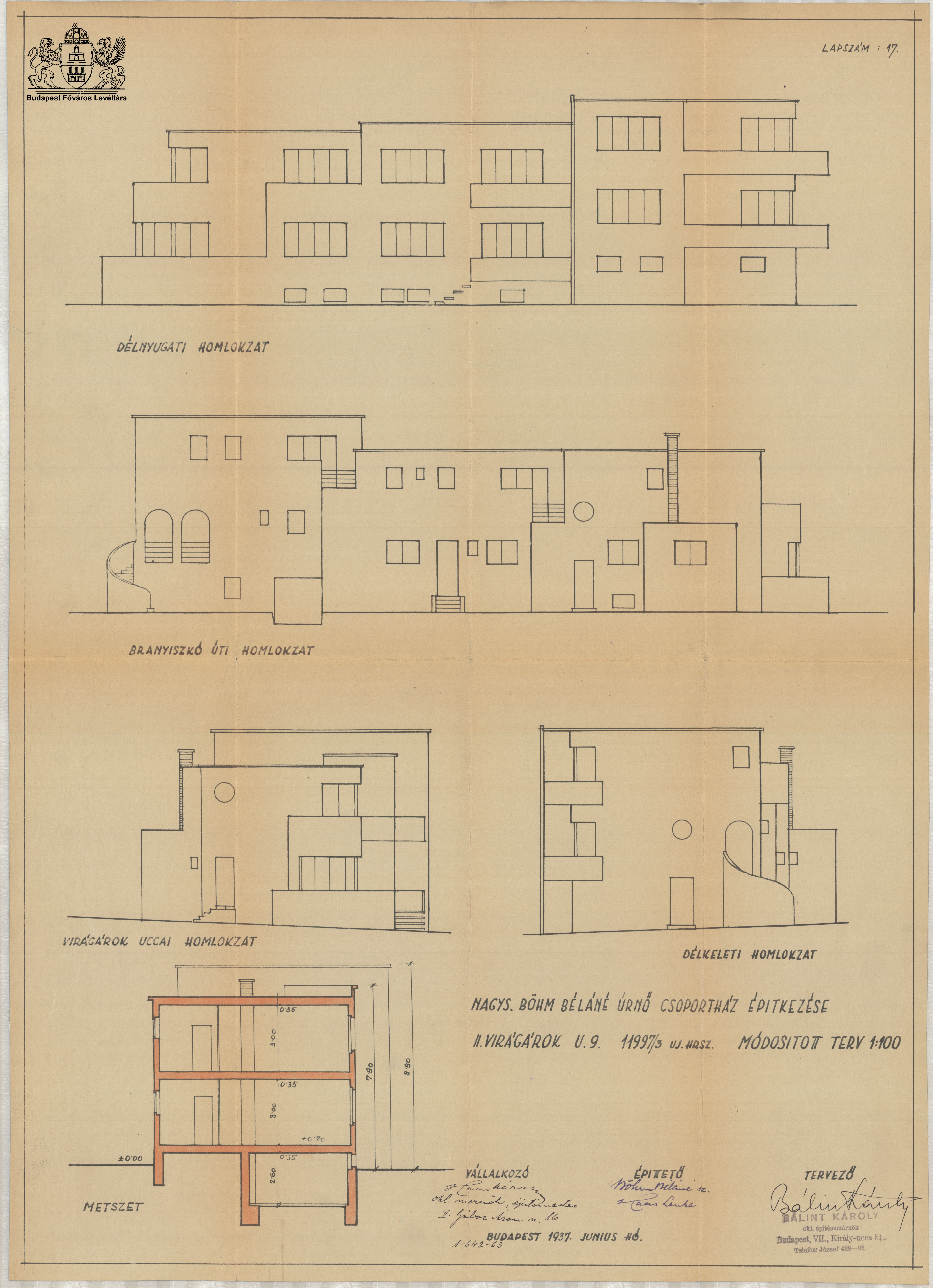 Branyiszkó út 11/a, b, c Previous Toggle image Módosított homlokzatok és metszet Type of document Tervek Date of creation 1937 Collection Budapest Főváros Levéltára Related work Branyiszkó út 11/a, b, c Reference code XV.17.d.329 Letöltés Previous