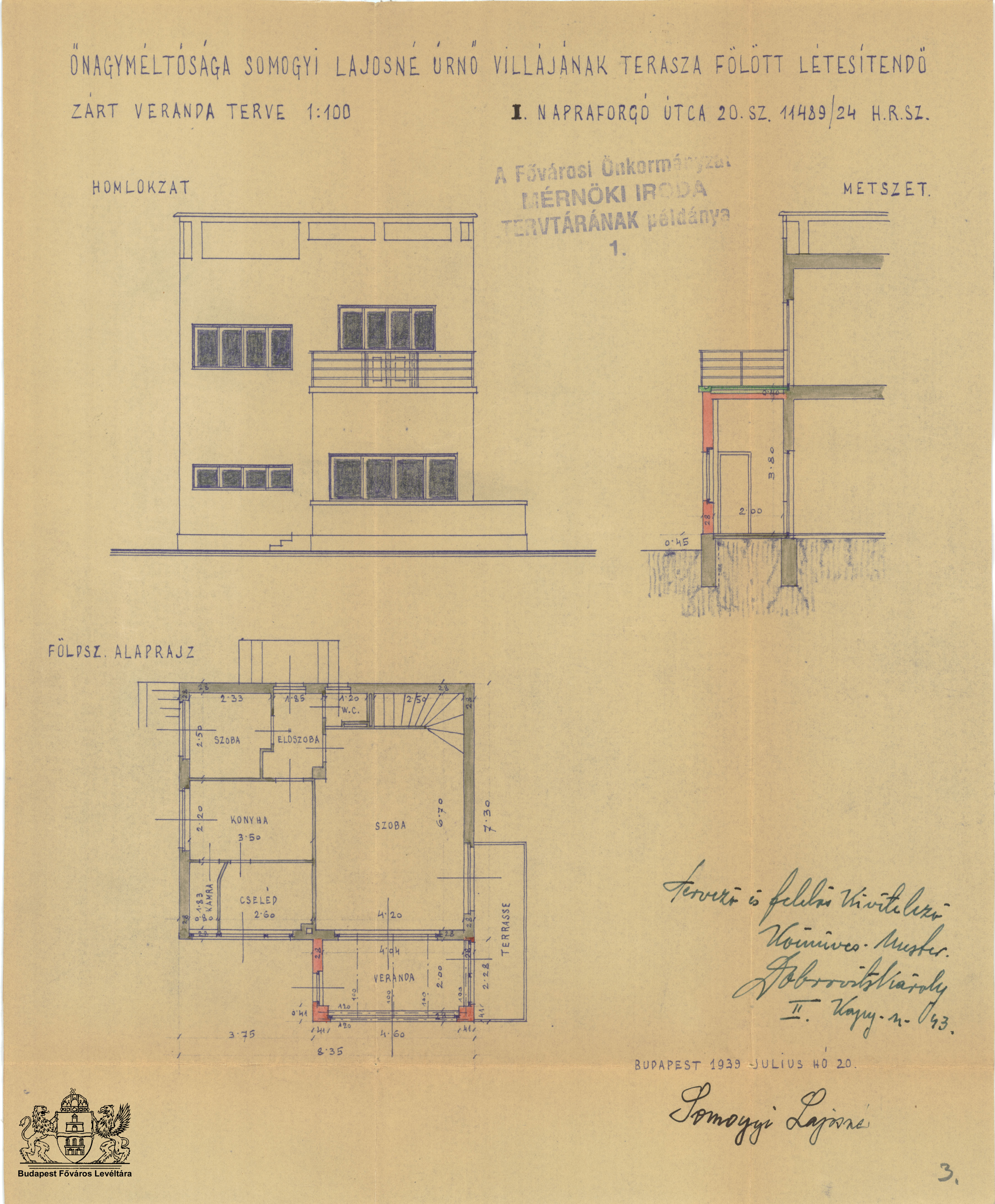 Napraforgó utcai mintatelep Previous Toggle image Zárt veranda terve Tervező: Dobrovits Károly kőművesmester Type of document Napraforgó utca 20. Date of creation 1939.07.20 Collection Budapest Főváros Levéltára Related work Napraforgó utcai mintatelep Reference code XV.17.d.329 11489/24 Letöltés Previous