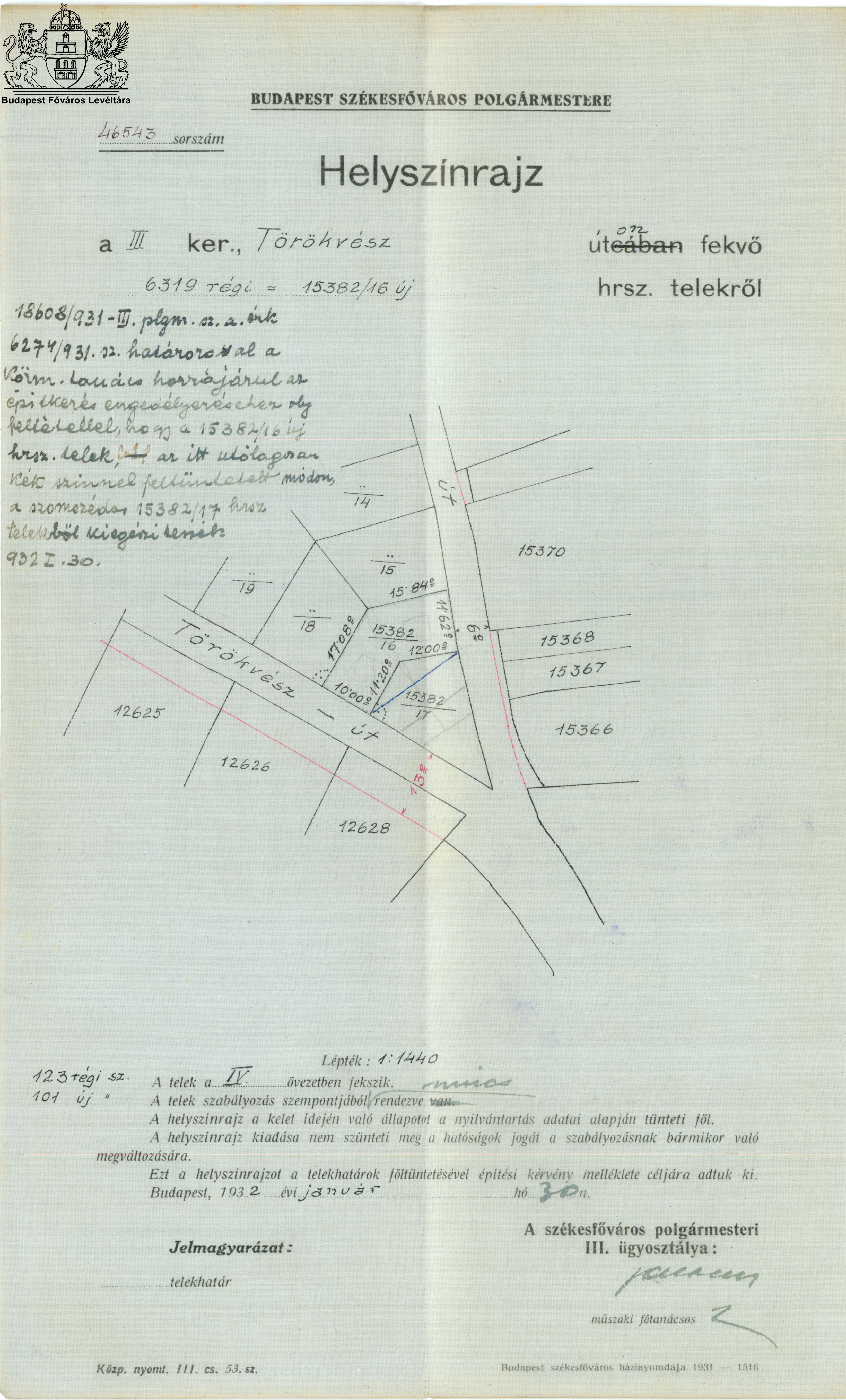Törökvész út 7/b PreviousNext Toggle image Helyszínrajz Type of document Tervek Date of creation 1932.01.30 Collection Budapest Főváros Levéltára Related work Törökvész út 7/b Reference code XV.17.d.329 Letöltés PreviousNext