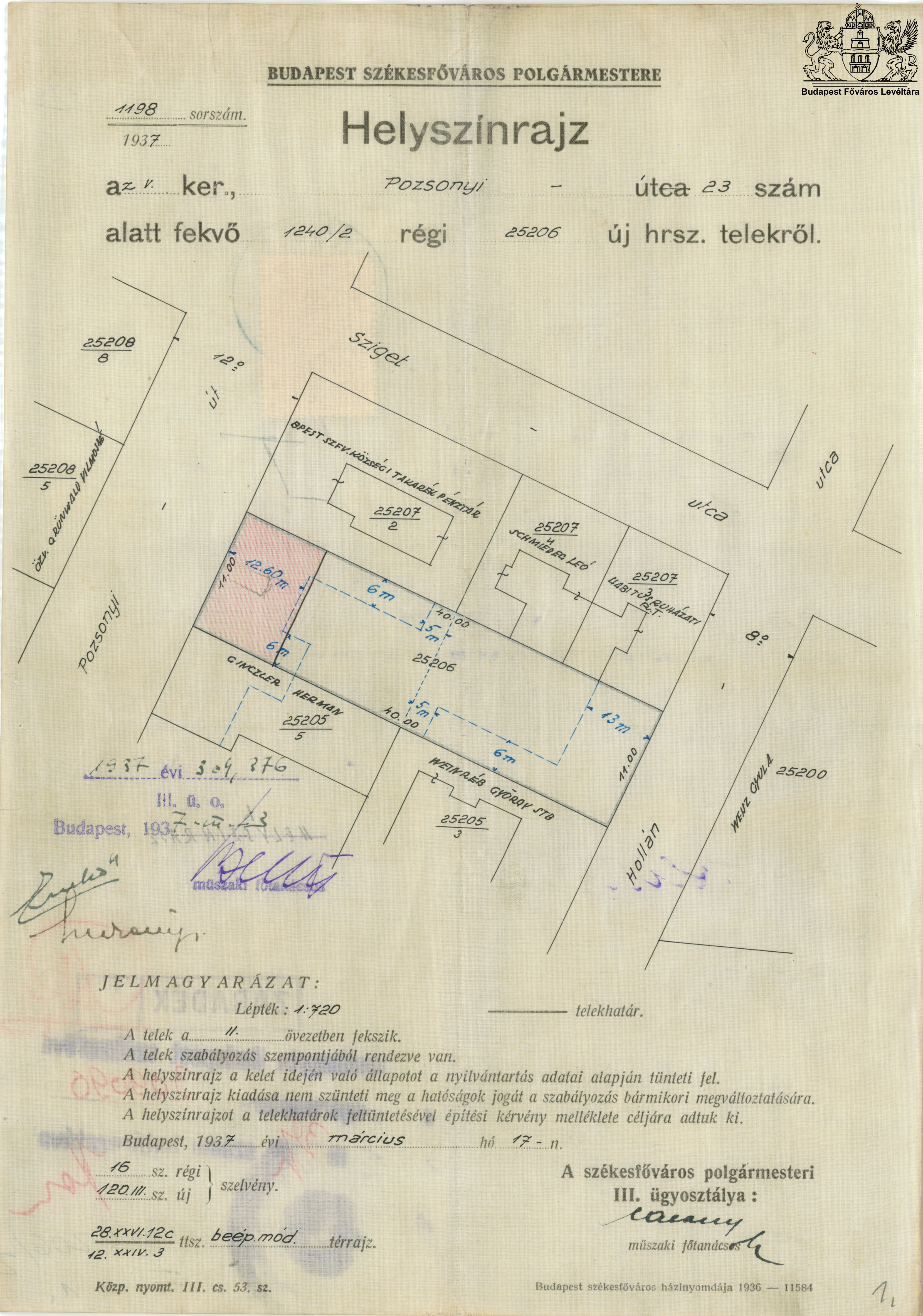Pozsonyi út 23. Next Toggle image Helyszínrajz Type of document Tervek Date of creation 1937.03.17 Collection Budapest Főváros Levéltára Related work Pozsonyi út 23. Reference code XV.17.d.329 Letöltés Next
