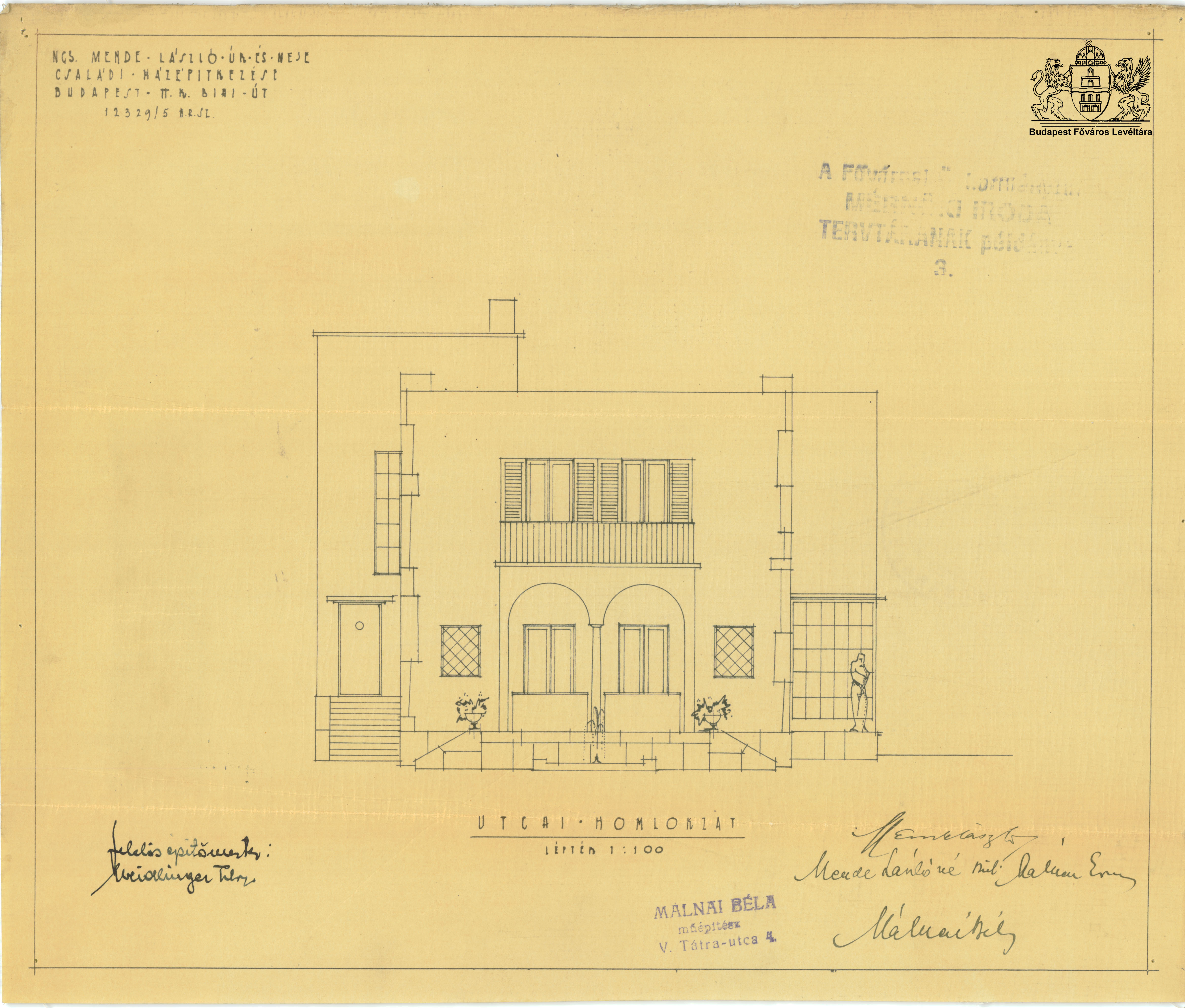 Orló utca 7. PreviousNext Toggle image Utcai homlokzat Type of document Tervek Date of creation 1931.12 Collection Budapest Főváros Levéltára Related work Orló utca 7. Reference code XV.17.d.329 Letöltés PreviousNext