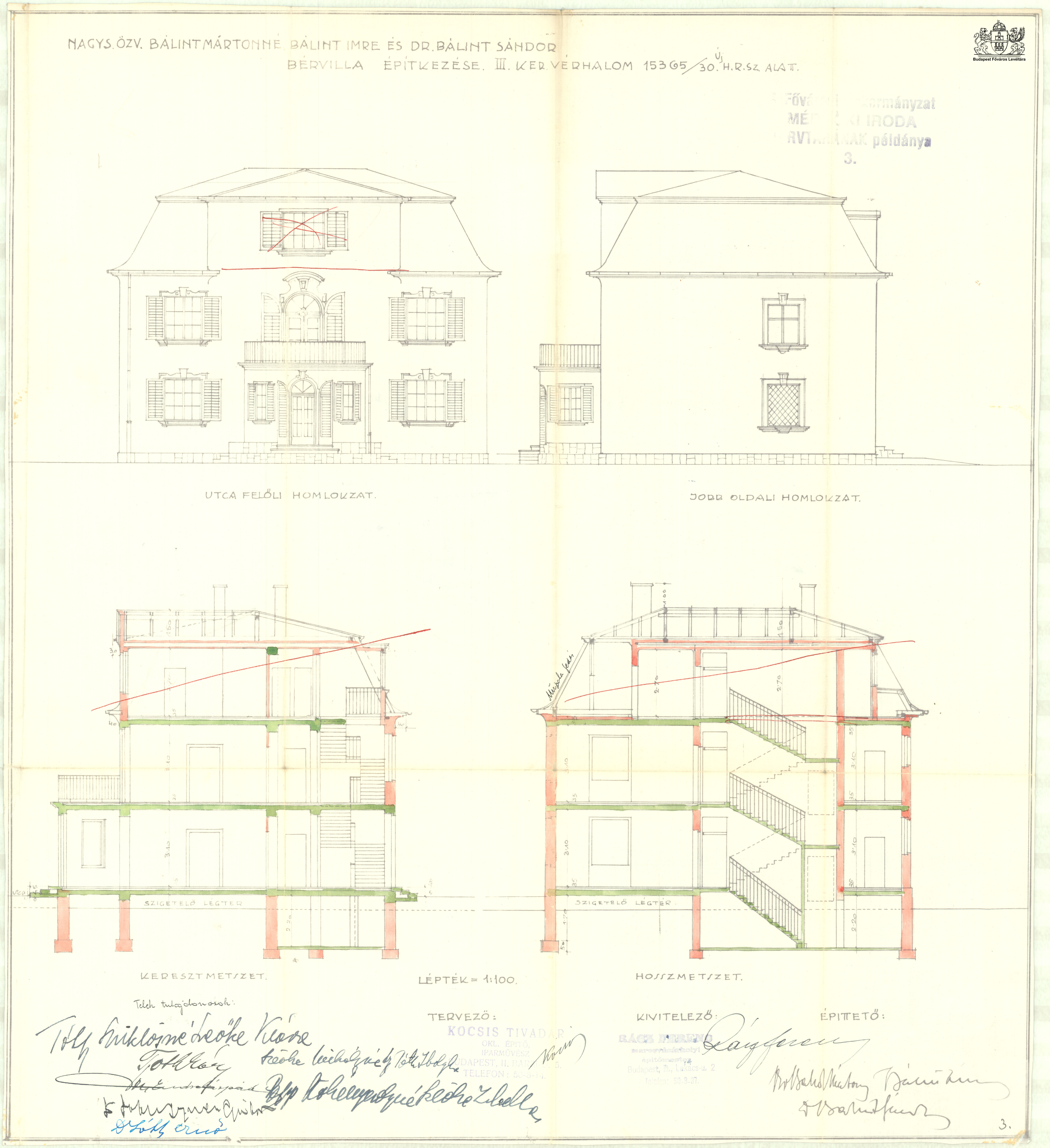 Utcai és oldalhomlokzat, metszet
