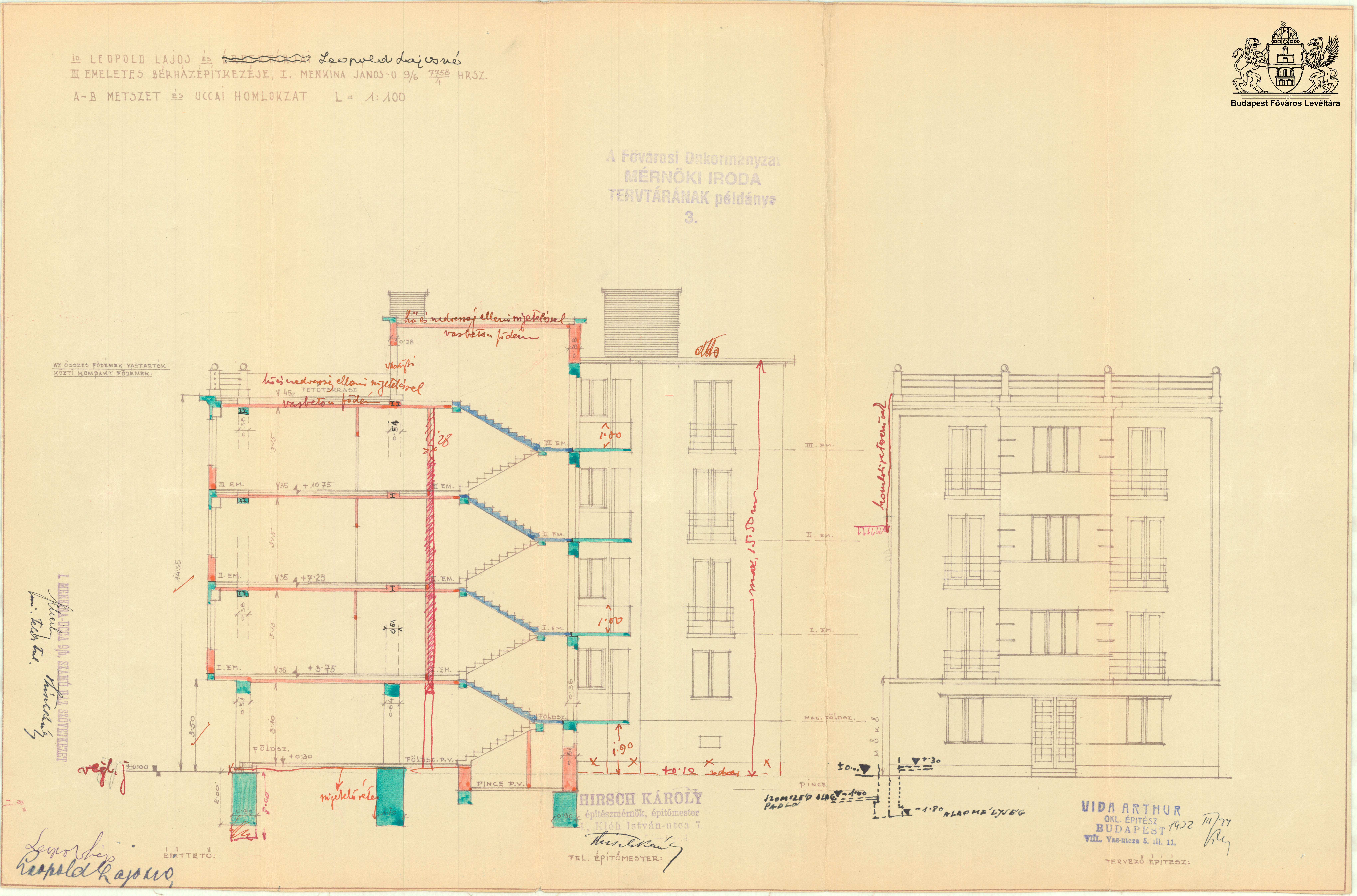 Tartsay Vilmos utca 11. Previous Toggle image Homlokzat és metszet Type of document Tervek Date of creation 1932.03.24 Collection Budapest Főváros Levéltára Related work Tartsay Vilmos utca 11. Reference code XV.17.d.329 Letöltés Previous