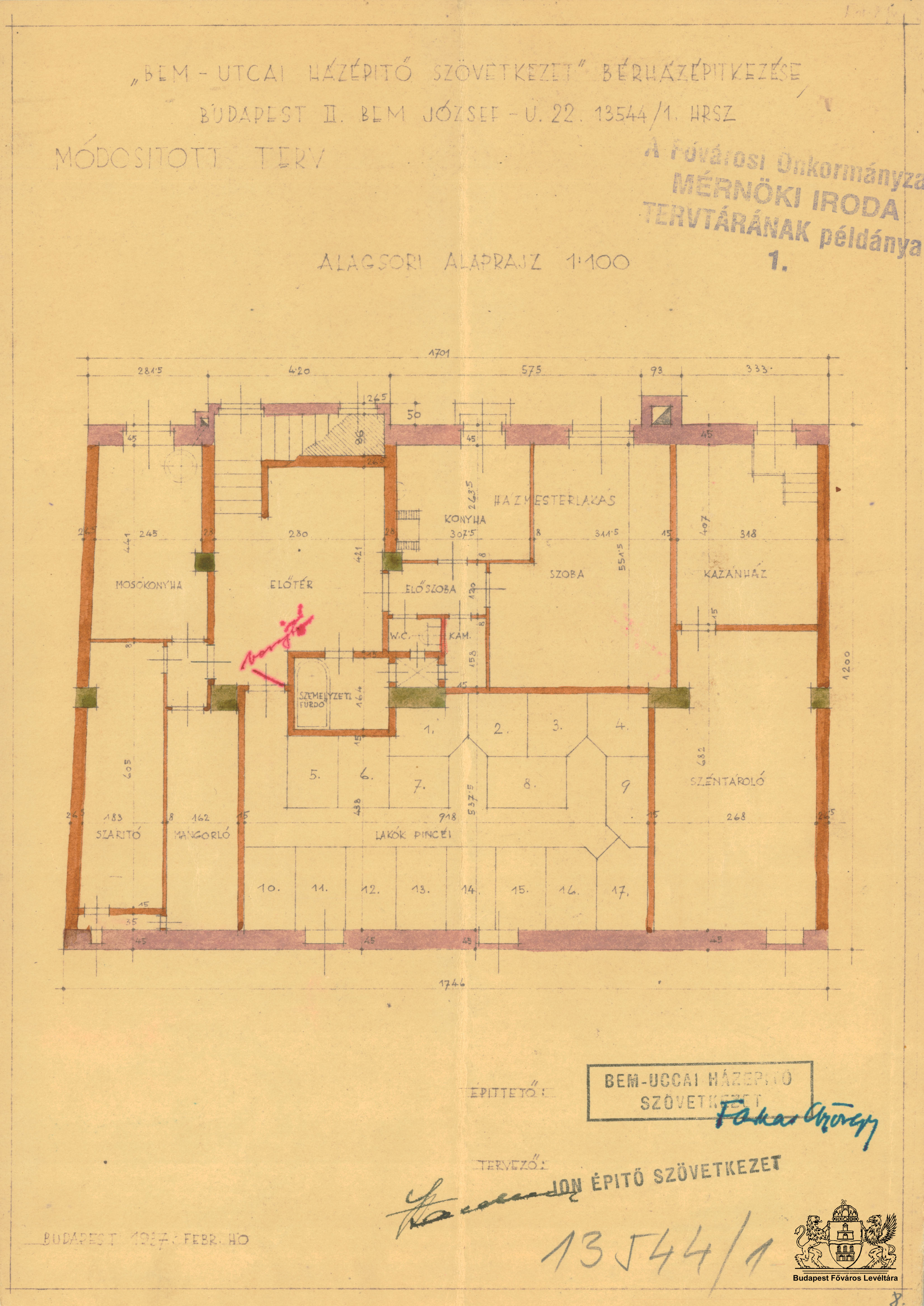 Bem József utca 22. PreviousNext Toggle image Alagsori módosított alaprajz Dokumentum típusa Tervek Keletkezés ideje 1937.02 Őrzési hely Budapest Főváros Levéltára Vonatkozó alkotás Bem József utca 22. Jelzet XV.17.d.329 Letöltés PreviousNext
