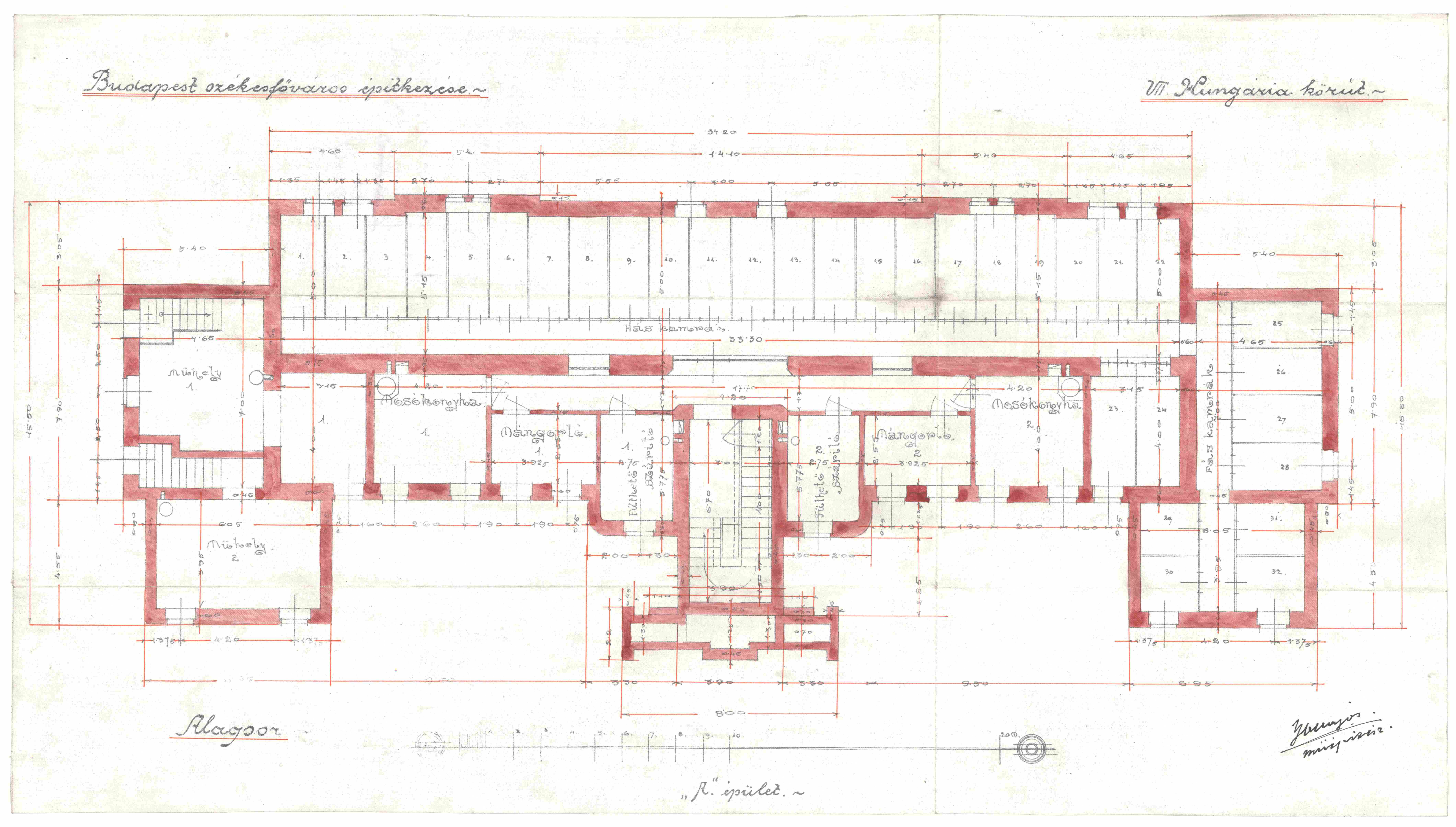 Szörény utca 5-7. PreviousNext Toggle image Budapest Székesfőváros Hungária körúti bérházépítkezése, A épület alagsori alaprajz Dokumentum típusa Tervrajz Őrzési hely Budapest Főváros Levéltára Vonatkozó alkotás Szörény utca 5-7. Jelzet HU BFL XV.17.d.328. 2083 172/191. Szerző Ybl Lajos Építtető Budapest Székesfőváros Letöltés PreviousNext