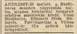 Bajcsy-Zsilinszky út 15/ a-b./Révay utca 2/a-b.-4., Révay köz 1-2. Previous Toggle image Budapesti Hírlap négyszoba-hallos lakás hirdetése Dokumentum típusa Lakásbérleti hirdetések 1931-1932 Keletkezés ideje 1932.09.11 Vonatkozó alkotás Bajcsy-Zsilinszky út 15/ a-b./Révay utca 2/a-b.-4., Révay köz 1-2. Jelzet Budapesti Hírlap 1932.09.11. Letöltés Previous