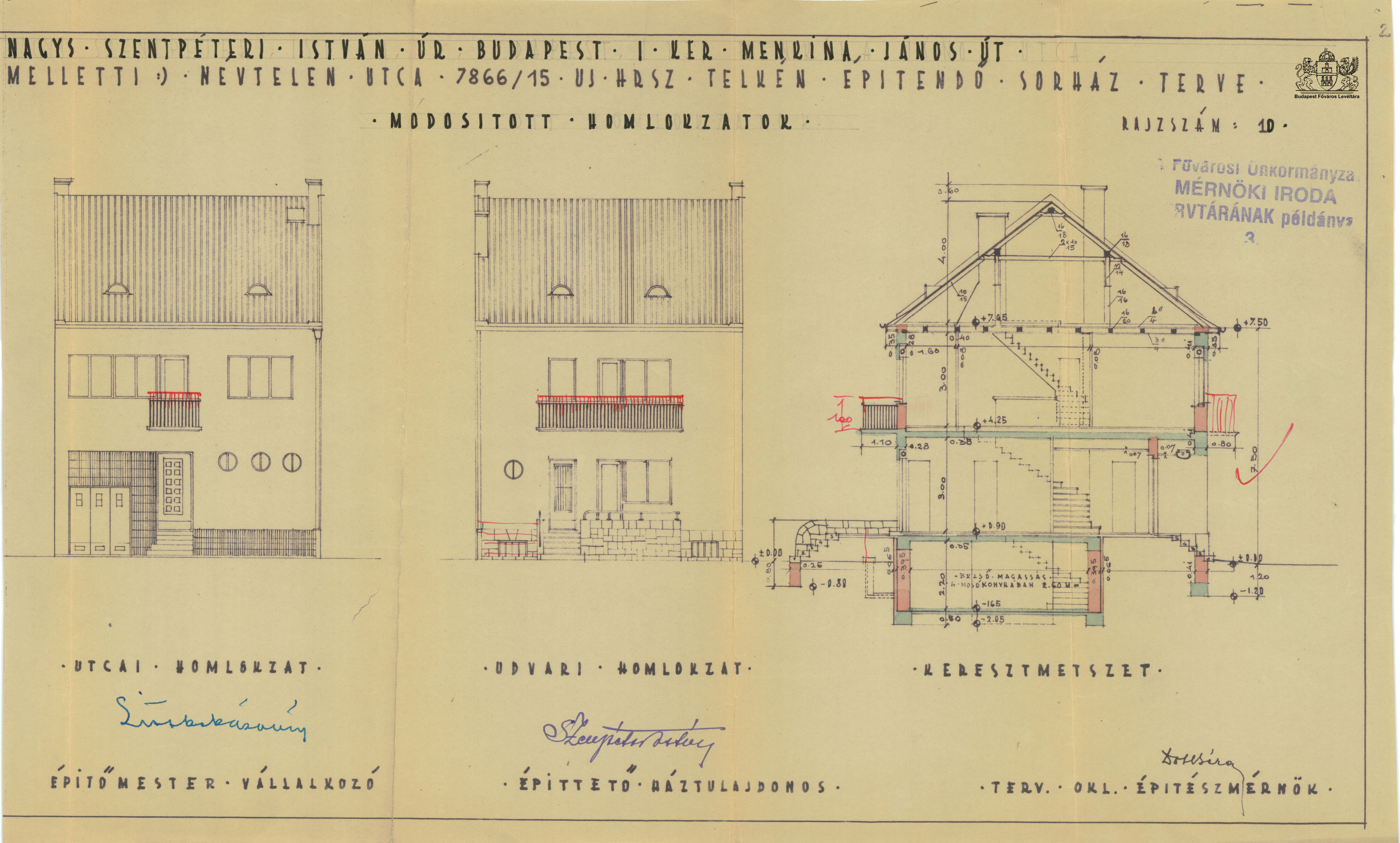Sorházas telep a Tartsay Vilmos utca mentén Next Toggle image Derkovits utca 3. (módosított homlokzat) Építtető: Szentpéteri István Tervező: Dobl Géza okl. építész Épült: 1938 Dokumentum típusa Derkovits utca (egykori Csendőr utca) Keletkezés ideje 1938.01 Őrzési hely Budapest Főváros Levéltára Vonatkozó alkotás Sorházas telep a Tartsay Vilmos utca mentén Jelzet XV.17.d.329 7866/15 Letöltés Next