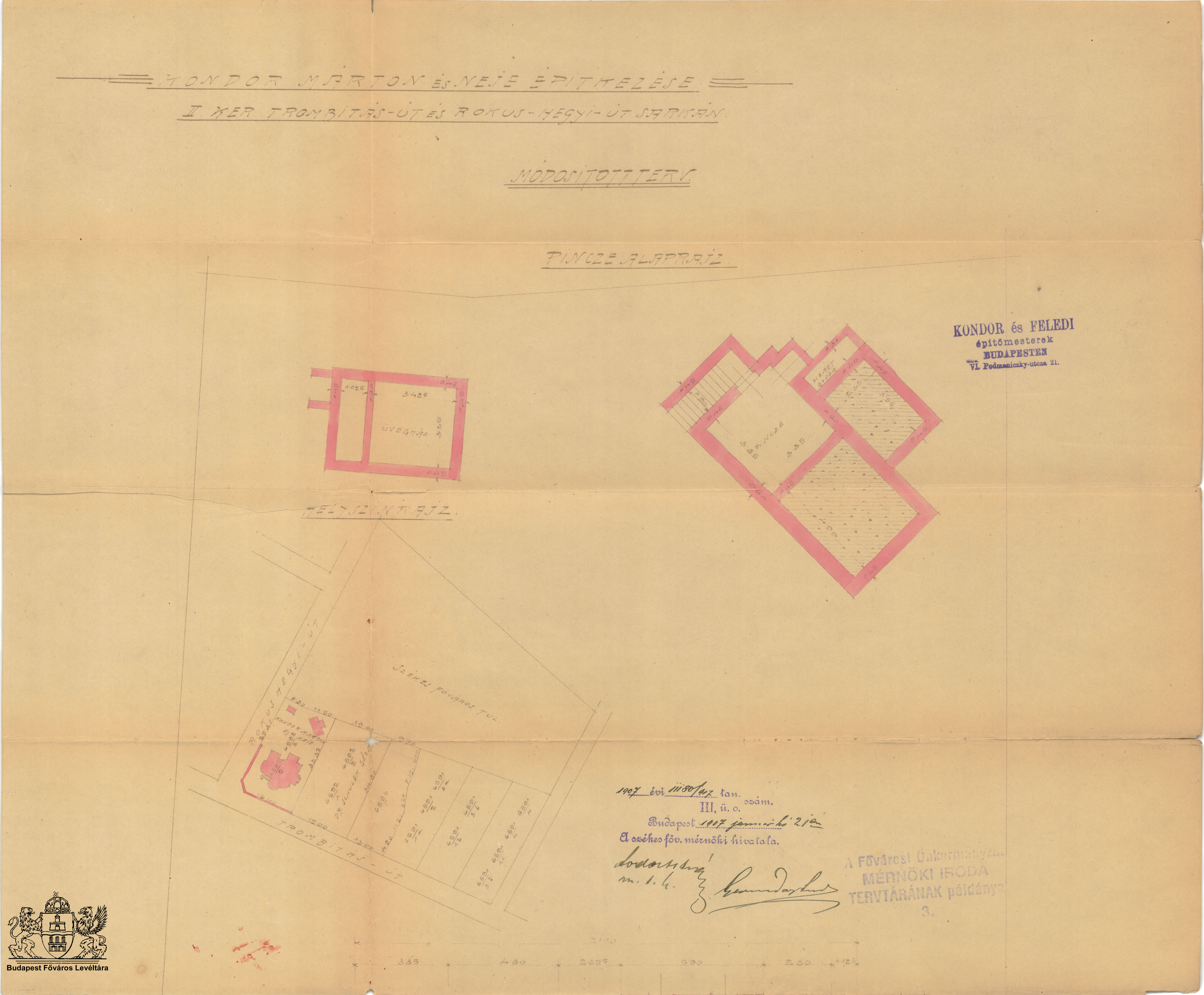 Trombitás út 23. PreviousNext Toggle image Helyszínrajz és pincealaprajz (módosított terv) Dokumentum típusa Kondor Márton és neje nyaralóépítkezése 1906-1907-ben Keletkezés ideje 1906 - 1907 Őrzési hely Budapest Főváros Levéltára Vonatkozó alkotás Trombitás út 23. Jelzet XV.17.d.329 Letöltés PreviousNext