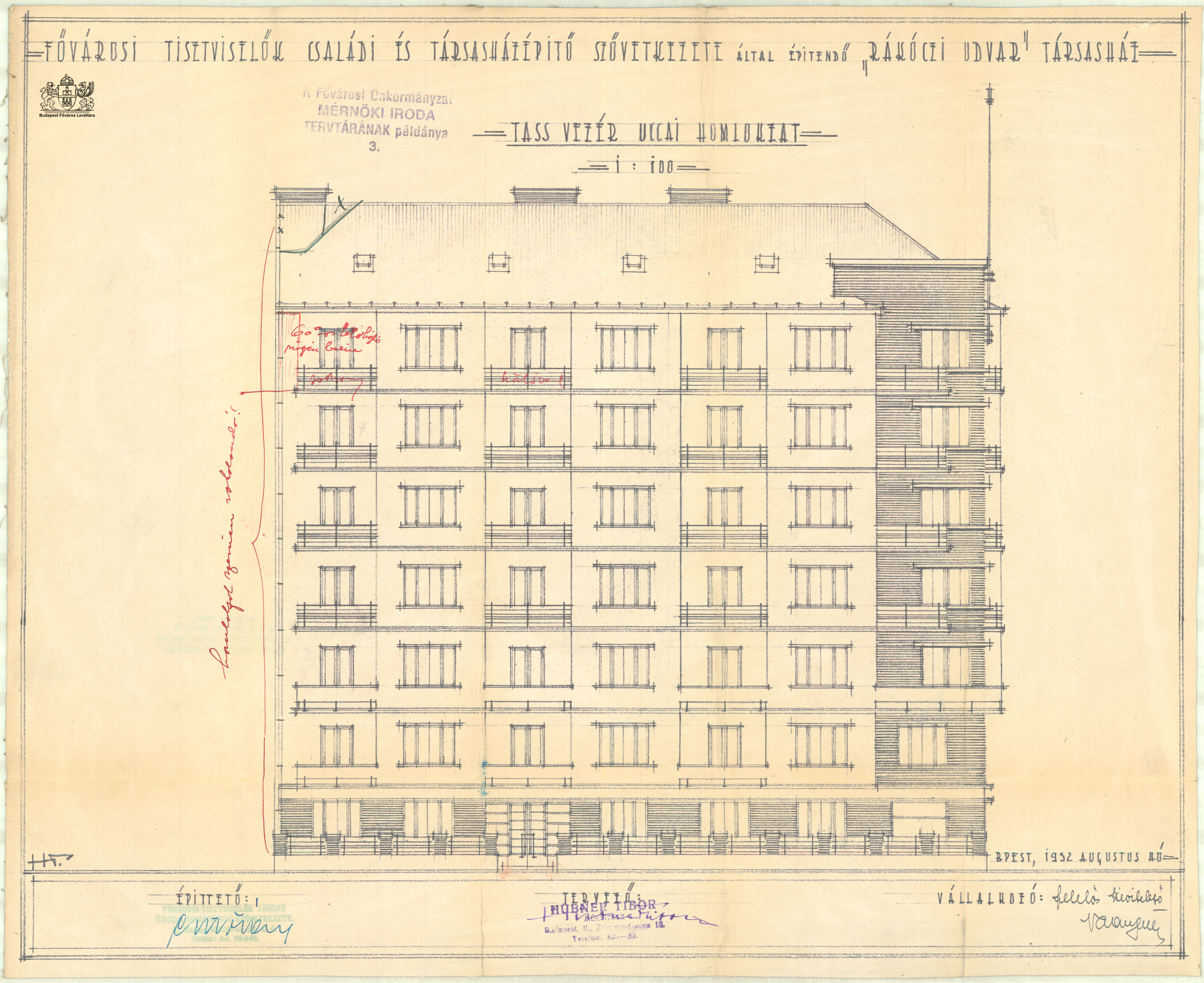Tas vezér utca 20./Bocskai út 33. (Rákóczi-udvar) PreviousNext Toggle image Homlokzat (Tas vezér utcai) Dokumentum típusa Tervek Keletkezés ideje 1932.08 Őrzési hely Budapest Főváros Levéltára Vonatkozó alkotás Tas vezér utca 20./Bocskai út 33. (Rákóczi-udvar) Jelzet XV.17.d.329 Letöltés PreviousNext