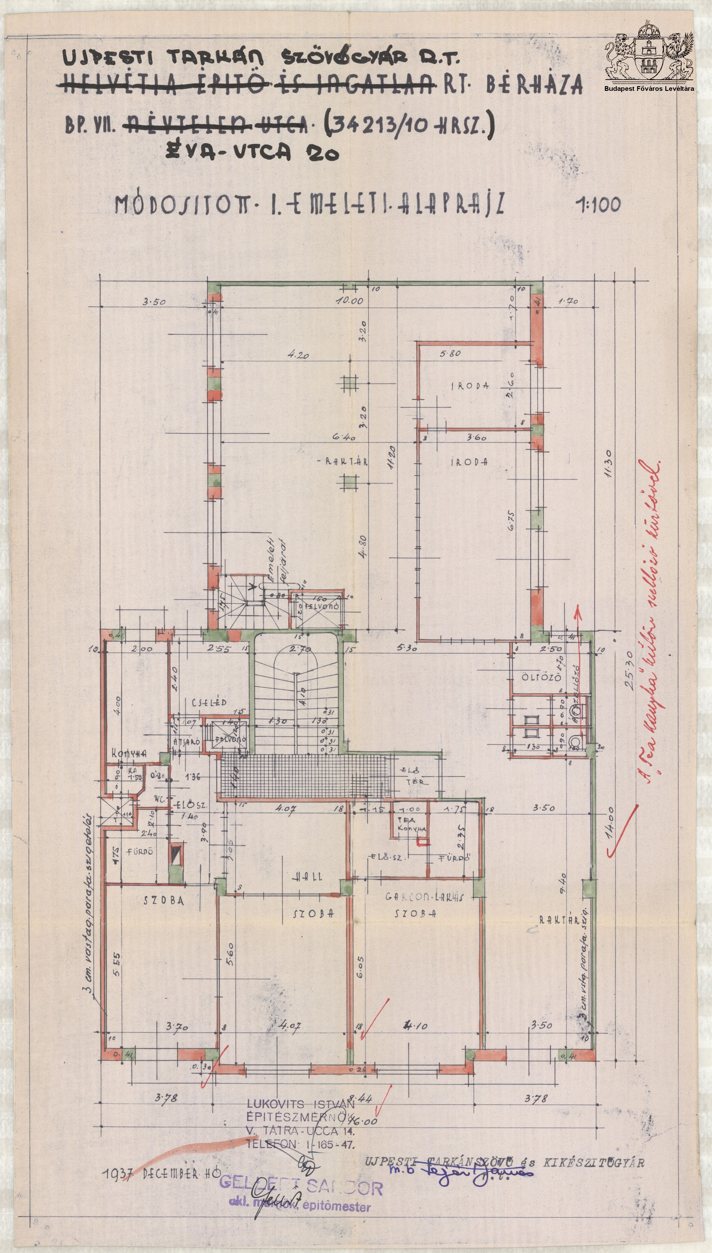 Asbóth utca 22. Next Toggle image I. emeleti alaprajz Dokumentum típusa Tervrajz Tárgy Tervrajz Keletkezés ideje 1937 Őrzési hely Budapest Főváros Levéltára Vonatkozó alkotás Asbóth utca 22. Jelzet XV.17.d.329 Letöltés Next