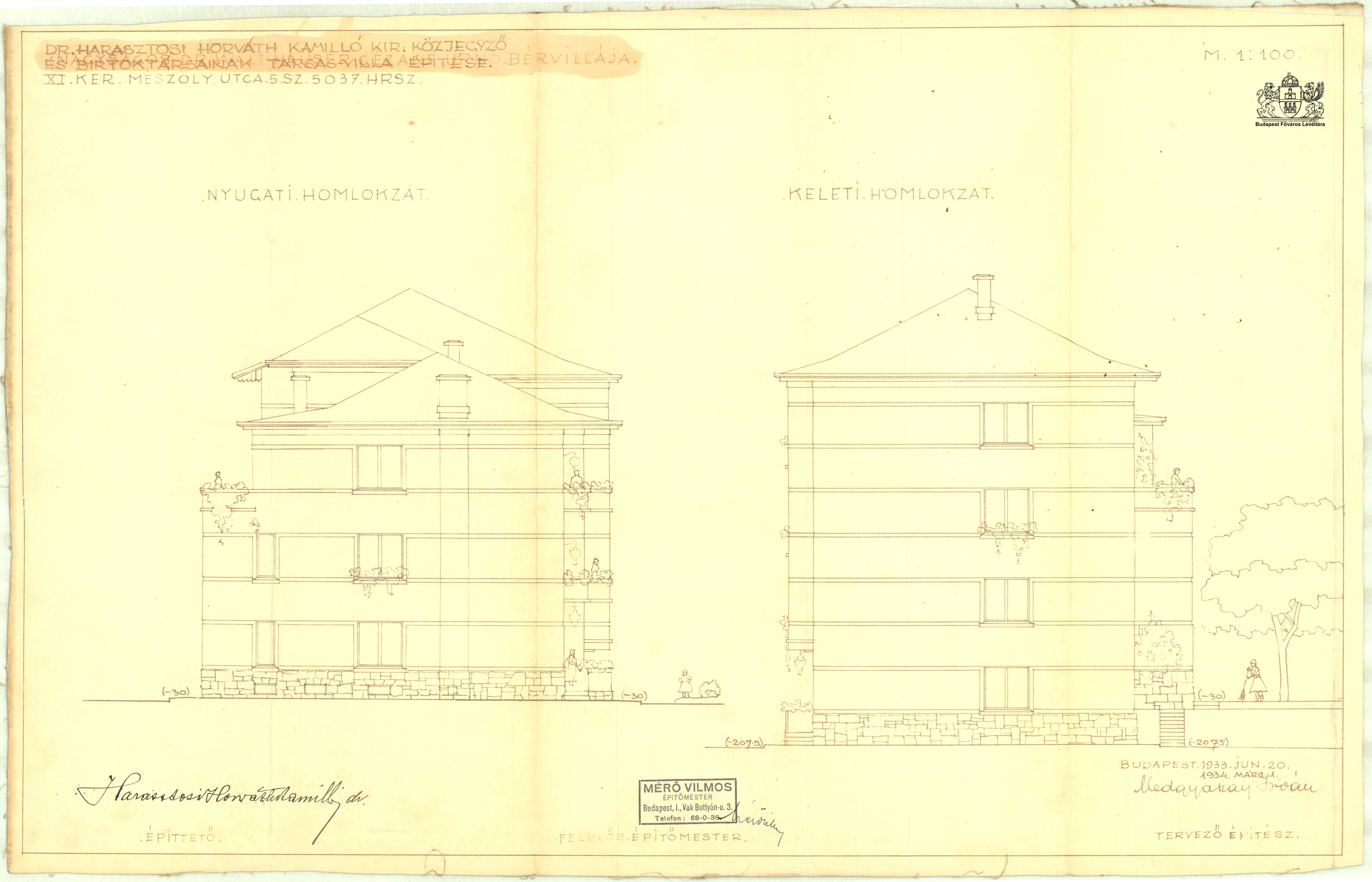 Mészöly utca 5. Previous Toggle image Keleti és nyugati homlokzat Dokumentum típusa Tervek Keletkezés ideje 1934.03.01 Őrzési hely Budapest Főváros Levéltára Vonatkozó alkotás Mészöly utca 5. Jelzet XV.17.d.329 Letöltés Previous