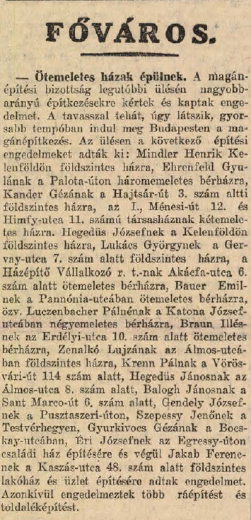 Akácfa utca 6./Dohány utca 41. Previous Toggle image A magánépítkezések felgyorsulása 1928-ban Dokumentum típusa Újságcikkek az Akácfa utca 6-ról Tárgy újságcikk Keletkezés ideje 1928.04.04 Vonatkozó alkotás Akácfa utca 6./Dohány utca 41. Jelzet Budapesti Hírlap 1928.04.04. Letöltés Previous