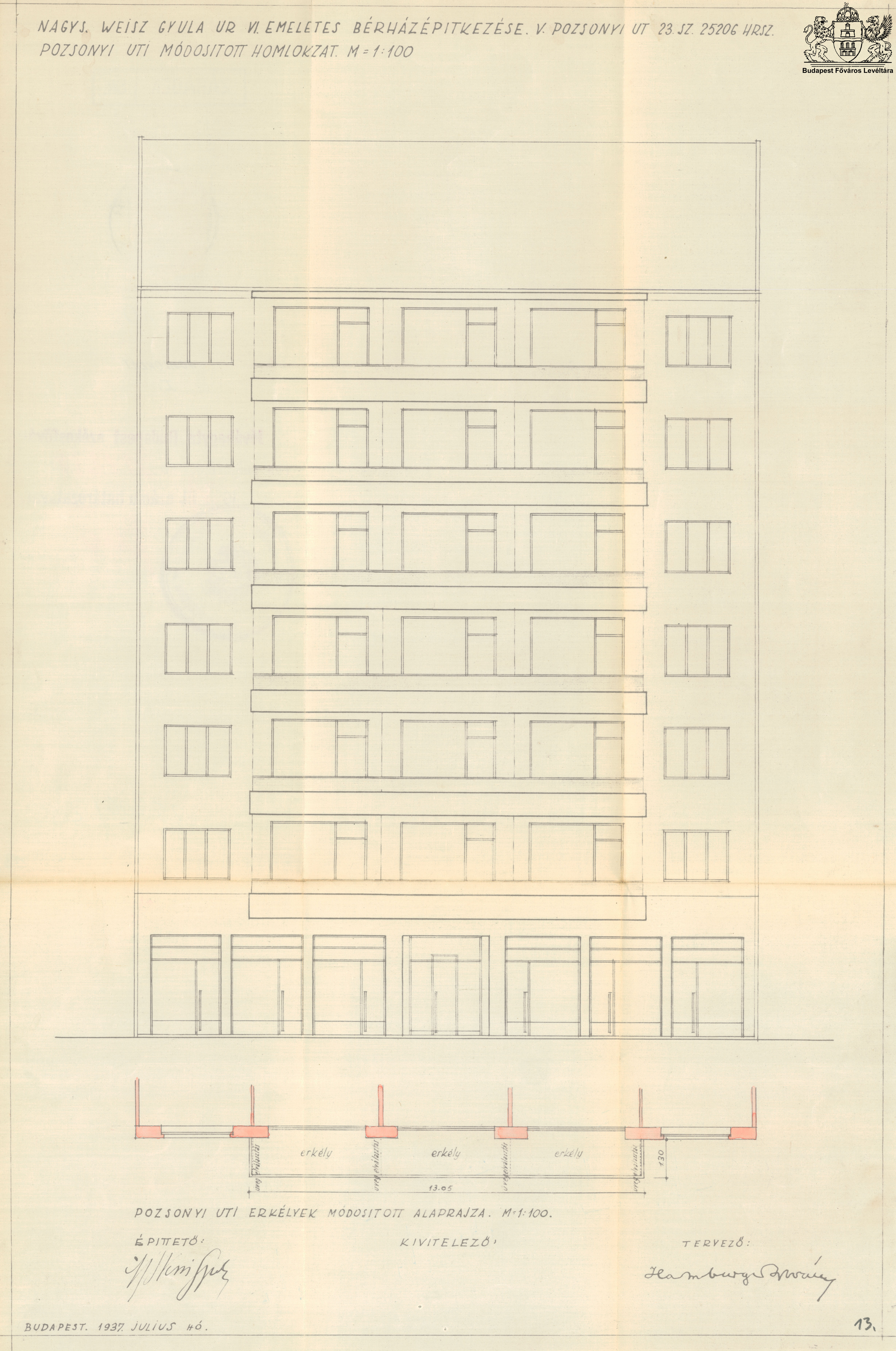 Pozsonyi út 23. PreviousNext Toggle image Módosított homlokzat Dokumentum típusa Tervek Keletkezés ideje 1937.07 Őrzési hely Budapest Főváros Levéltára Vonatkozó alkotás Pozsonyi út 23. Jelzet XV.17.d.329 Letöltés PreviousNext