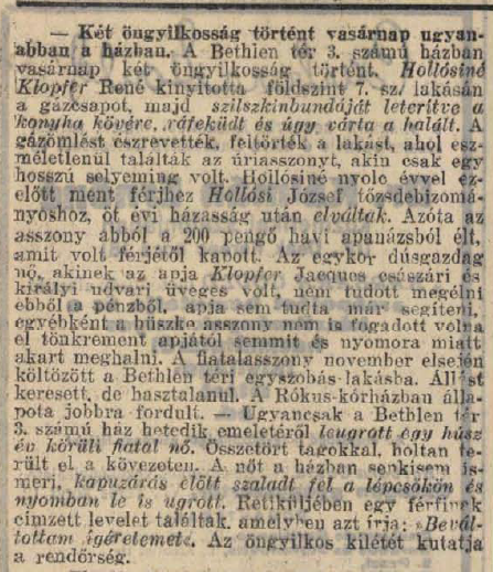 Rákosi-udvar PreviousNext Toggle image Öngyilkosok Dokumentum típusa Öngyilkosságok a Bethlen tér 3-ban Tárgy újságcikk Keletkezés ideje 1931.02.17 Vonatkozó alkotás Rákosi-udvar Jelzet Pesti Napló 1931.02.17. Letöltés PreviousNext